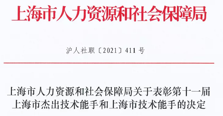 近日,上海市人力资源和社会保障局公布了第十一届上海市高技能人才评选表彰结果和2021年上海市技能大师工作室、首席技师资助名单,我区14位高技能人才获得表彰或资助。