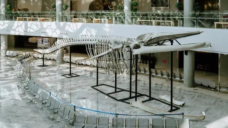 据介绍,这具骨骼标本来源于2017年3月20号在大治河入海处发现的搁浅须鲸尸体,被渔民发现时,死亡时间已超过10天以上。