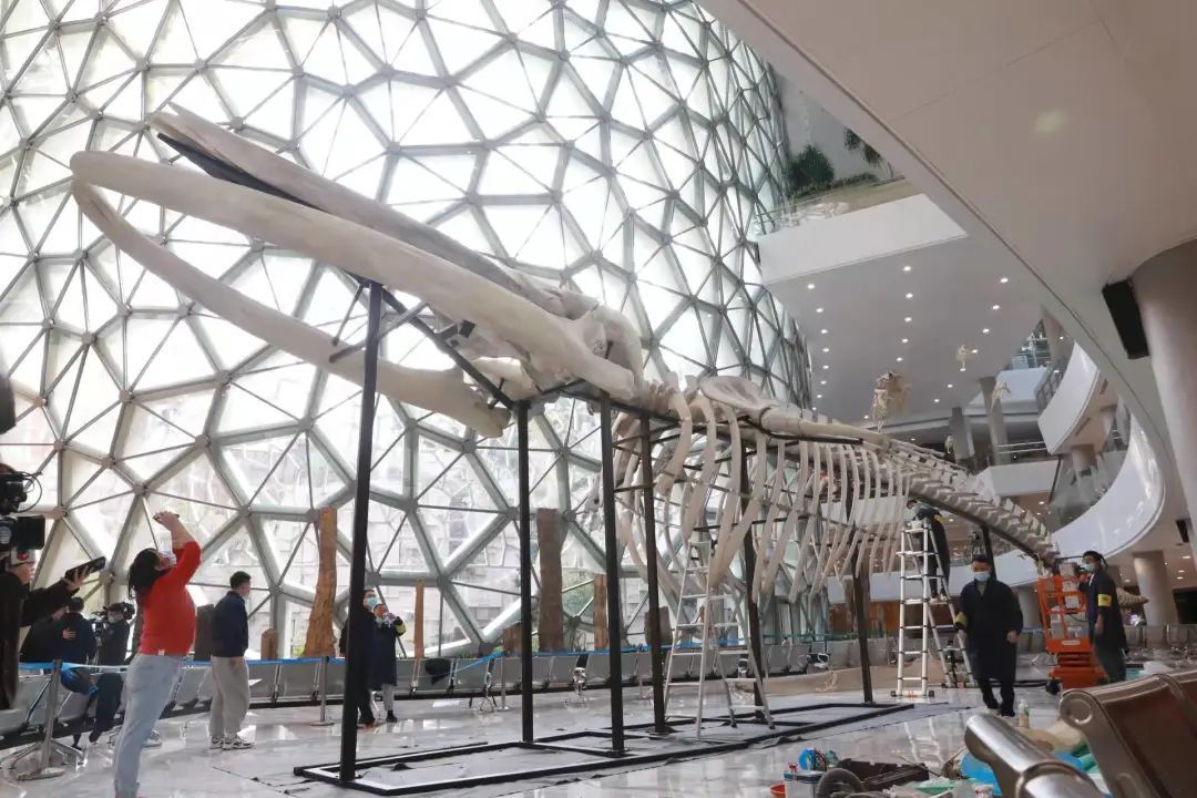 近日,一件长24米、重3吨的长须鲸骨骼标本在上海自然博物馆完成组装搭建,这是目前中国最长的长须鲸骨骼标本。