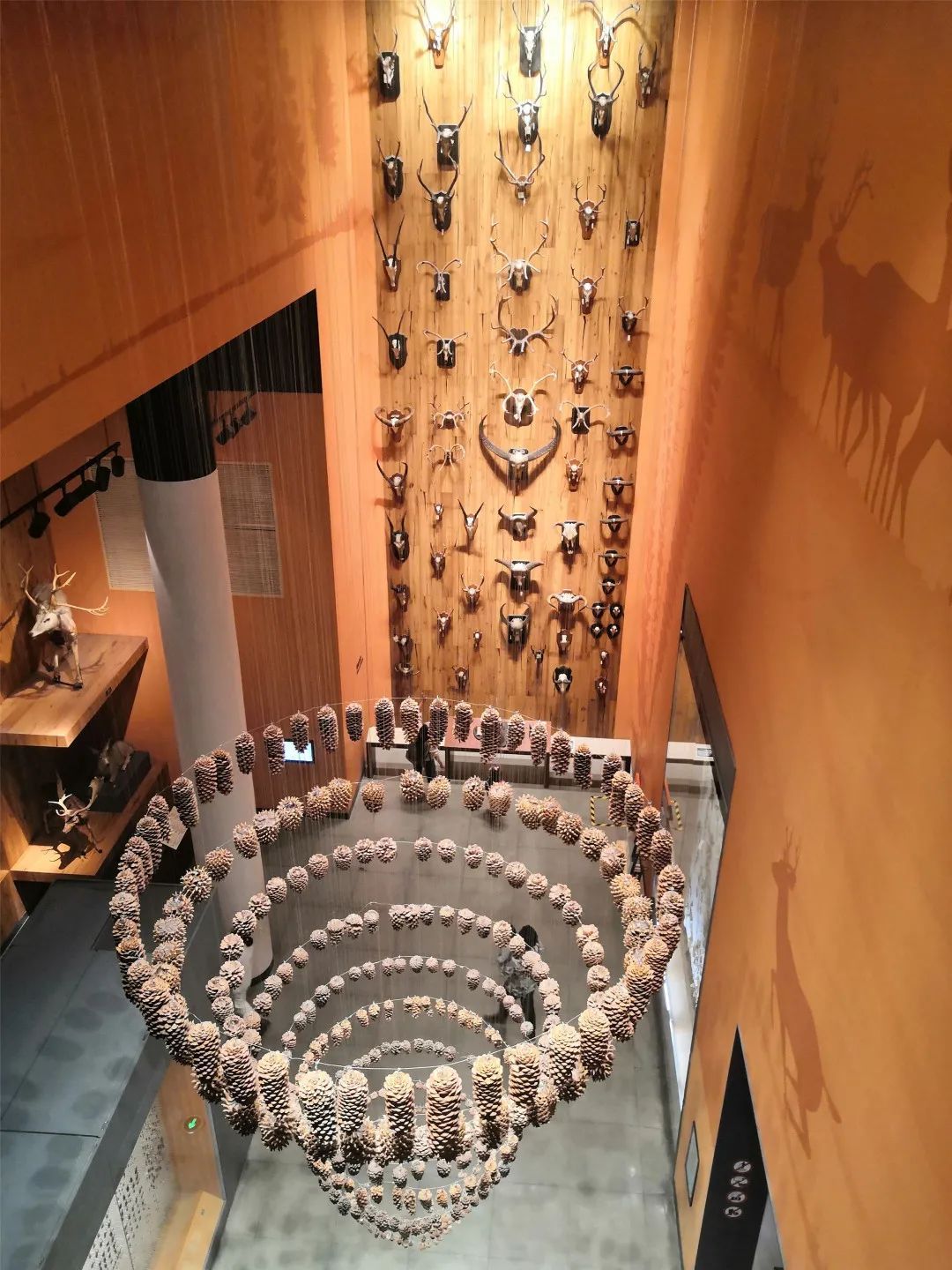 12米高的木纹地板上从上到下布满了鹿、牛、羊等各种动物的犄角。很少有人知道,这些犄角其实来自于老馆,连带着对于老馆的情感和记忆,在新馆落地生根,翻开崭新的一页。