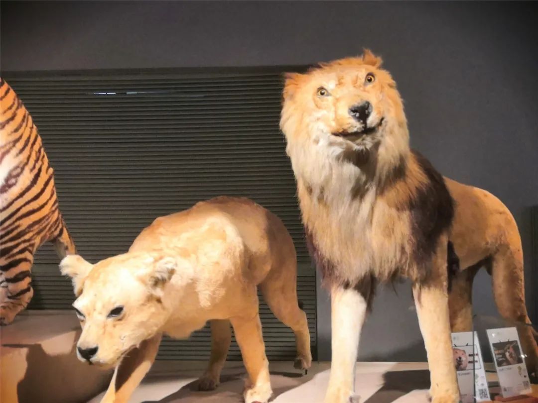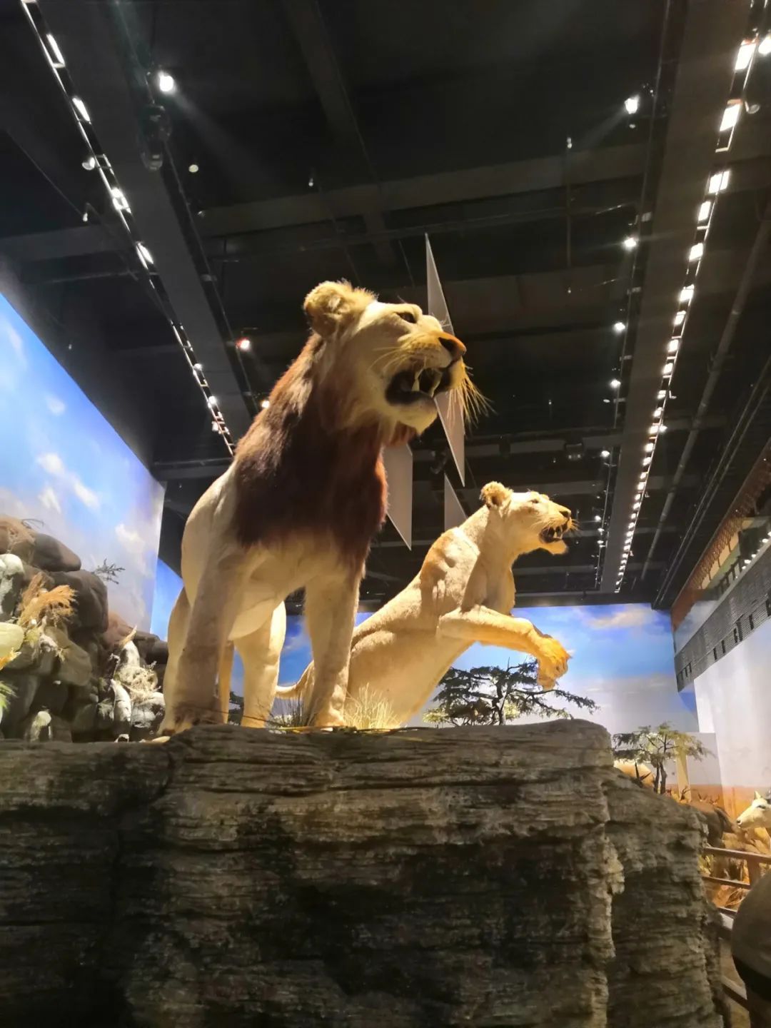 地下一层“生命长河”展区有一只表情十分生动的狮子标本,它瞪着两只溜圆的大眼睛,脖子梗梗着,一副又急又气的样儿。