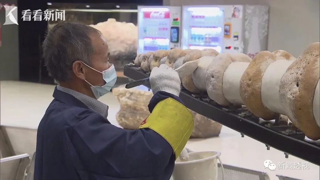 上海科技馆标本制作师张汤铭表示,这一部分耗时最长,足足花了三、四年的时间。因为骨骼上附着很多残肉,如果用刀具或者电动工具进行清理,会对骨骼造成不可避免的损伤,所以采用了自然的降解方式,通过微生物降解方式来对残肉进行处理。