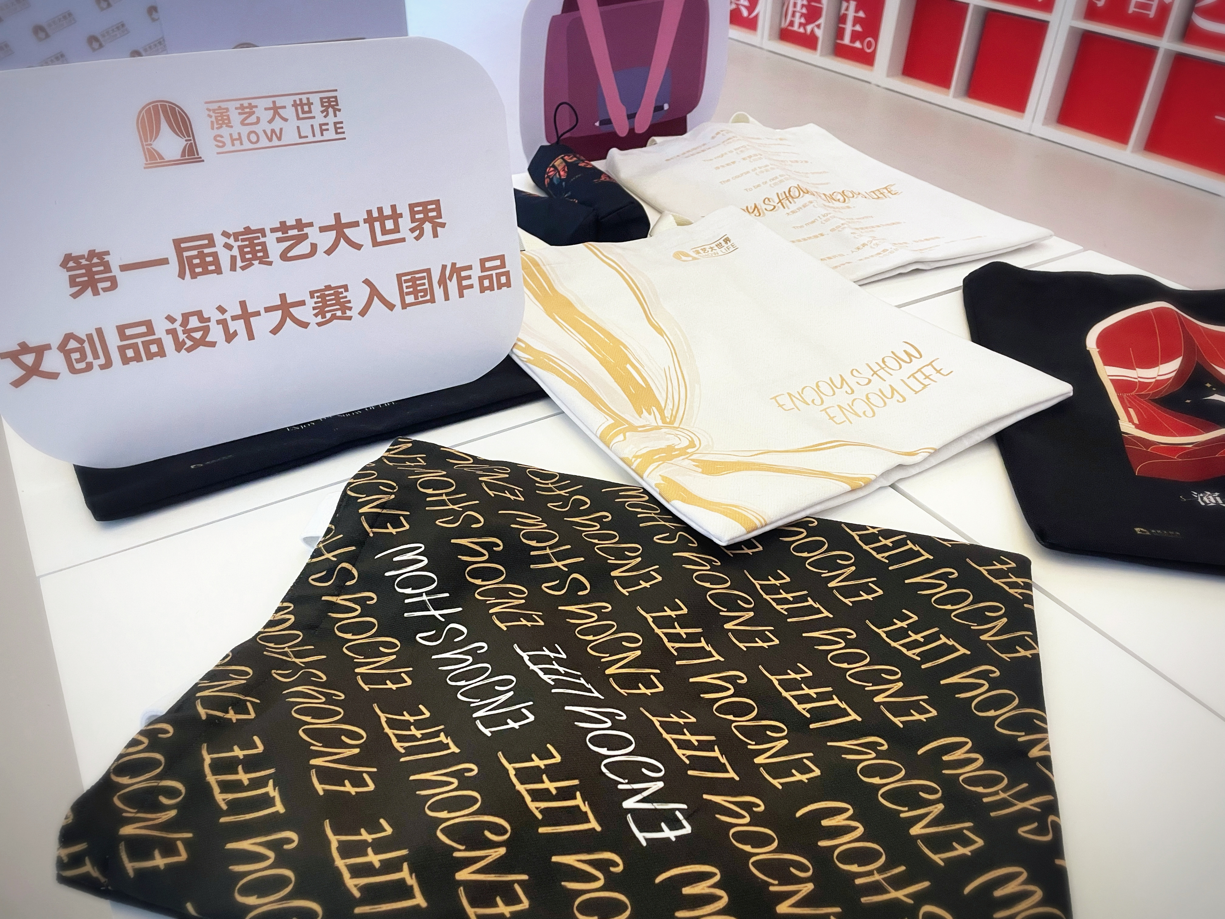 此外,折扇、T恤、餐具、帆布袋、抱枕、胸针、盲盒……入围第一届演艺大世界文创品设计大赛的优秀作品也在现场展出,分外吸睛。现场还设有演艺大世界自助售票机,观众们看到心仪的演出,可以完成一站式下单的快乐,持身份证原件享受演艺大世界补贴票带来的惊喜。