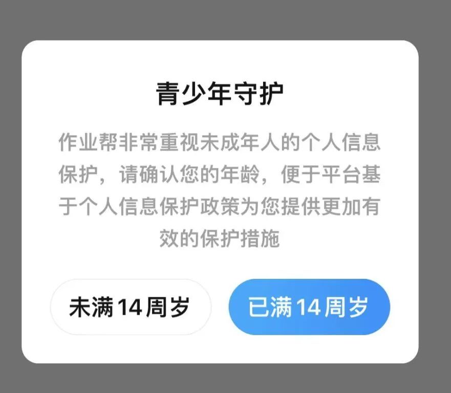 笔者下载了两个软件后发现,两款APP目前设有“青少年守护”功能,当你登陆后,APP会强制你选择“是否已满14周岁”,并且选择自己的身份为“学生”、“家长”或“老师”。