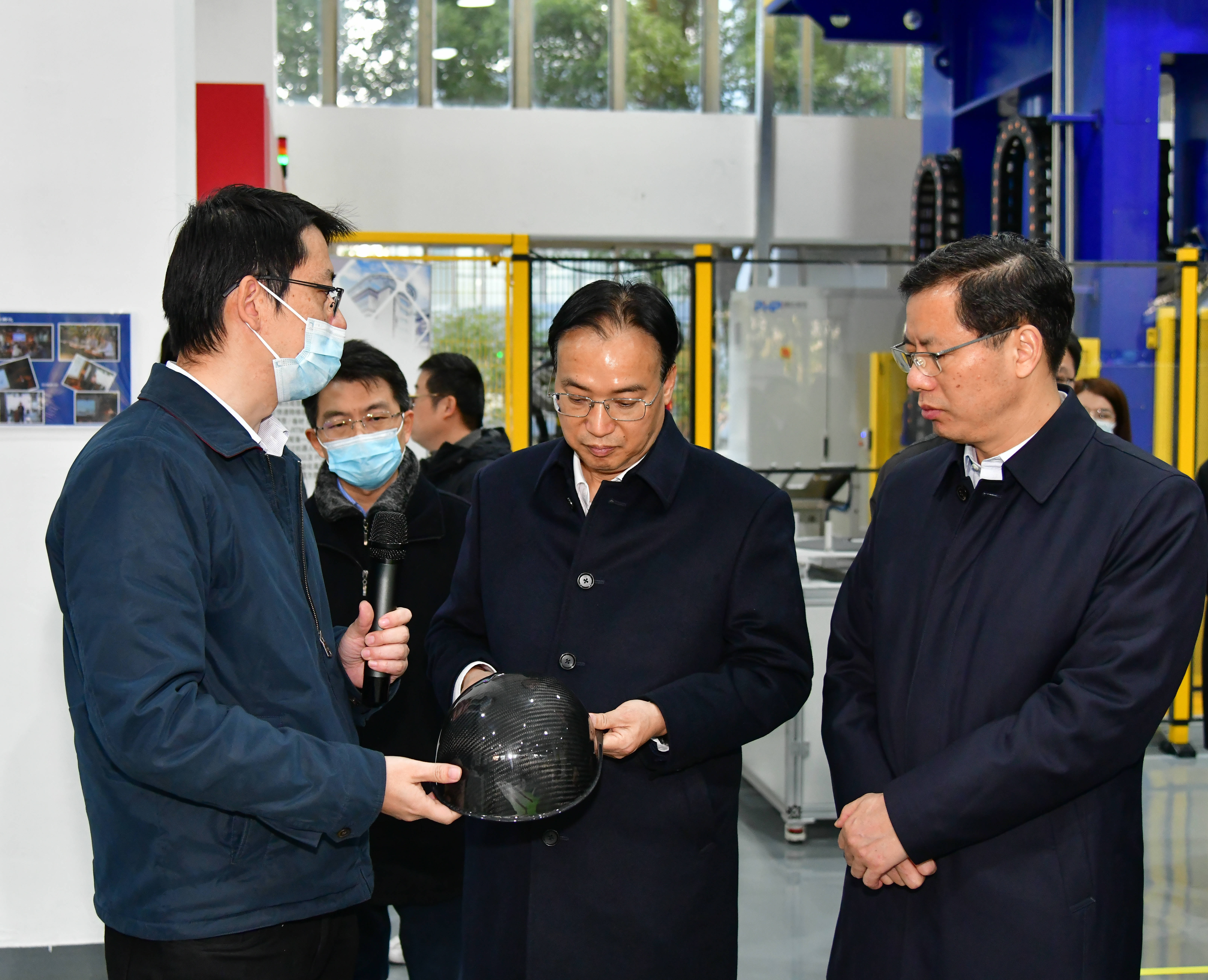 会前,国盛集团一行还考察了和平村和平里农民集中居住点、上海碳纤维复合材料创新研究院等处。在位于吕巷镇的和平村和平里农民集中居住点,国盛集团一行现场察看了最近建设进展,并听取周边规划布局介绍。走进上海碳纤维复合材料创新研究院工程中心,国盛集团一行详细了解了研究院的发展情况及运行成果,并上前察看产品及设备展示。据悉,工程中心是研究院承担材料测试、工艺研发、样件制备等创新研发服务功能的主体,目前已形成了复合材料的力学性能和理化性能的测试能力,以及复合材料工艺研发、零件试制和性能测试等服务能力。