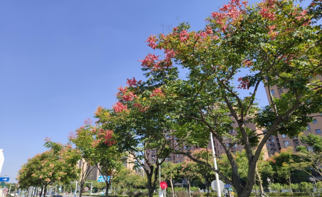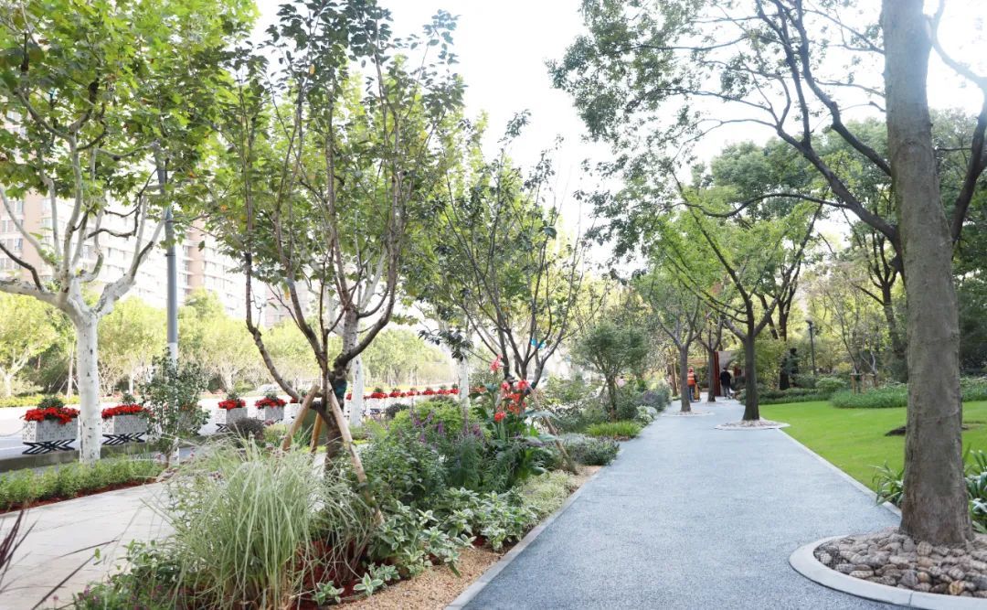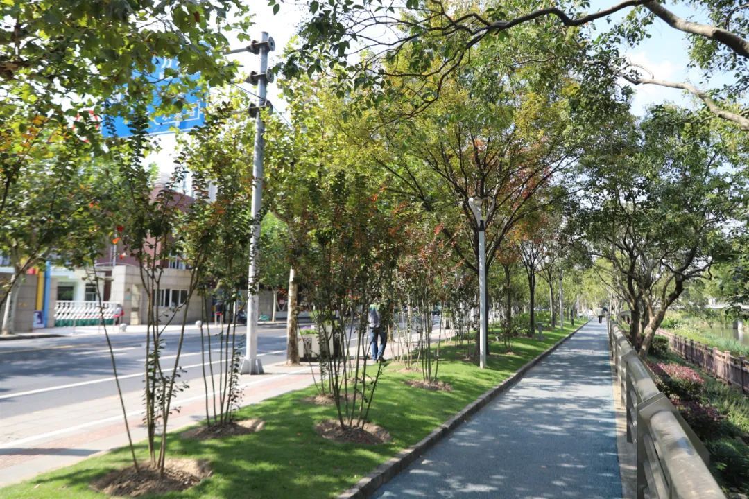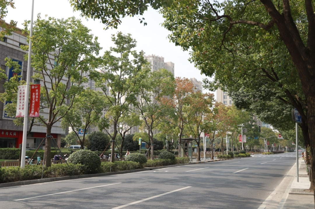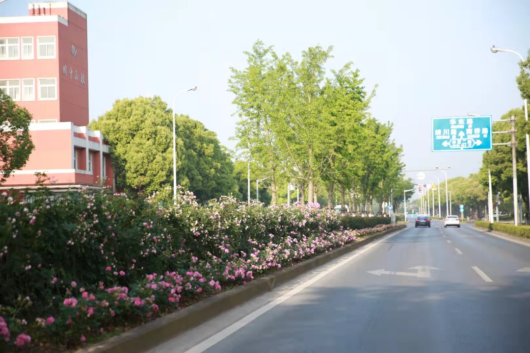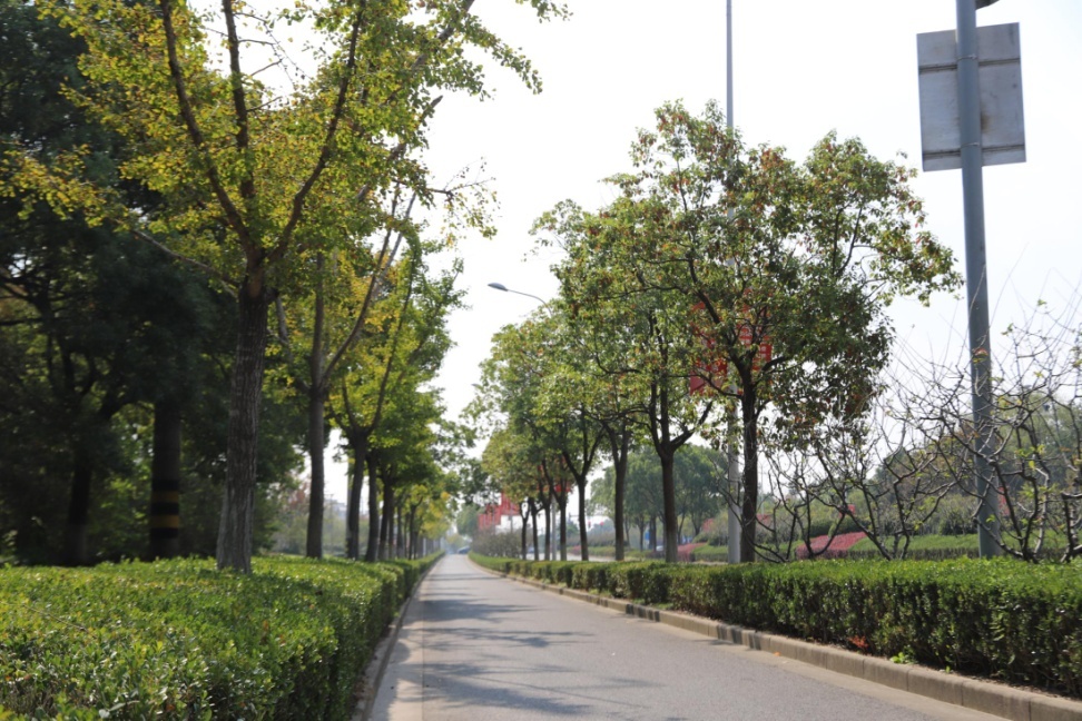 川环南路长1600米,行道树为香樟。中分带种有银杏、榉树,搭配樱花、美人蕉、紫薇等花灌木,配植蔷薇垂直绿化,让植物的整体布局更多层次、风格交融更多元化。