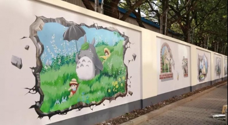 相比之下,妙栏路沿街的墙绘更大、更多元。据悉,妙兰居民区里共有5个动迁小区,位于妙栏路两侧。前两年,居民区整体翻新,小区面貌有了明显提升。为了进一步美化整个区域,川沙新镇启动妙栏路沿街整新工程,目前已进入施工中期。