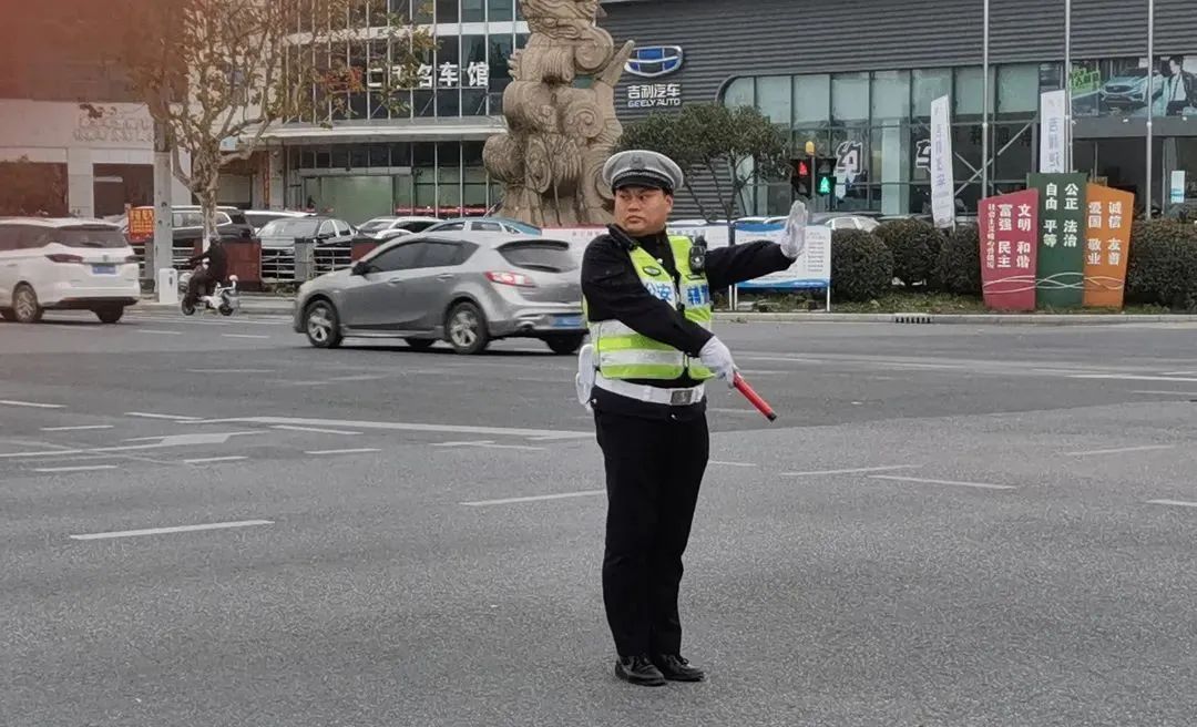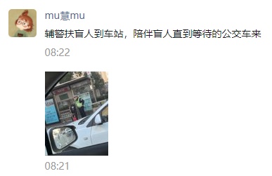 一直等到阿姨安全上车,公交车驶离车站,何冬俊这才回到路口继续辅助交警指挥交通。