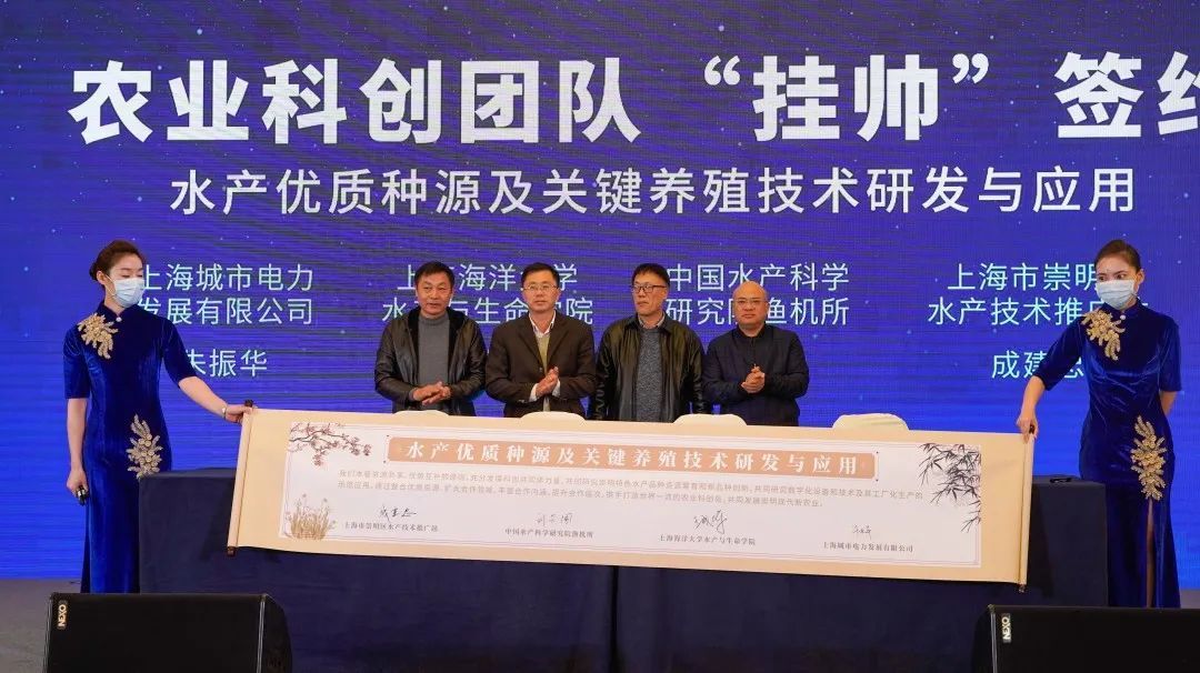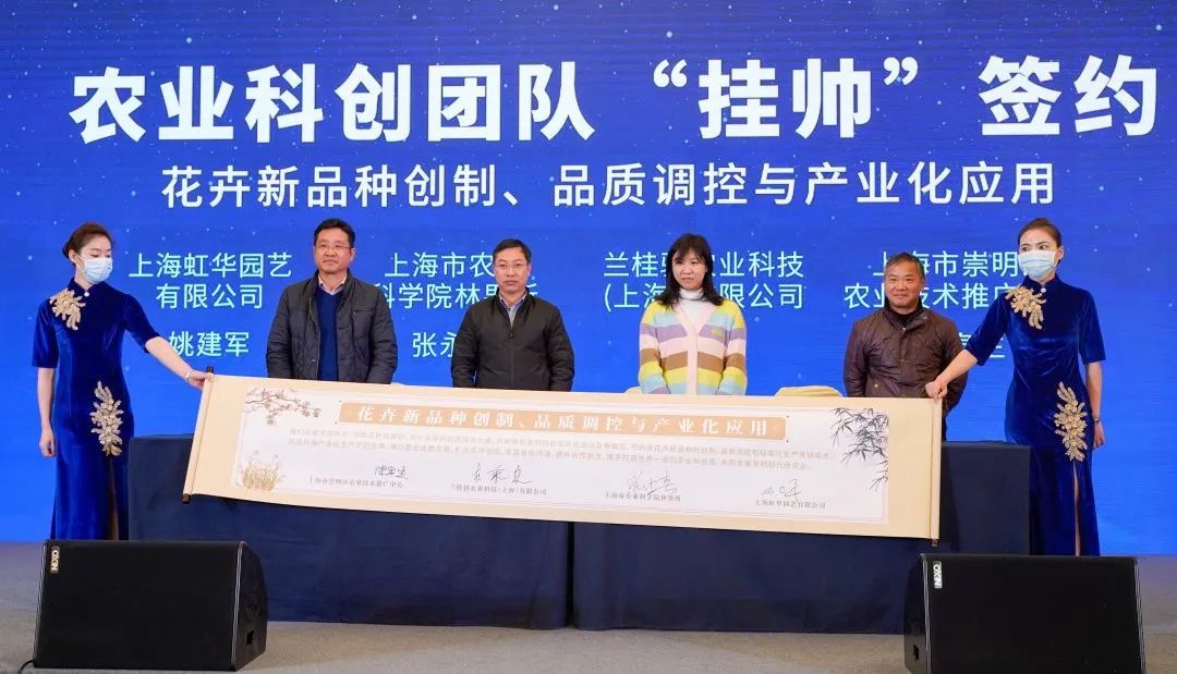 现场,来自中国农业大学、中国科学院分子植物科学卓越创新中心,上海交通大学、同济大学、复旦大学、上海师范大学、上海海洋大学、市农科院等科研院所的专家团队正式“挂帅”水产、花卉、生态、种源等四个项目并上台签约。