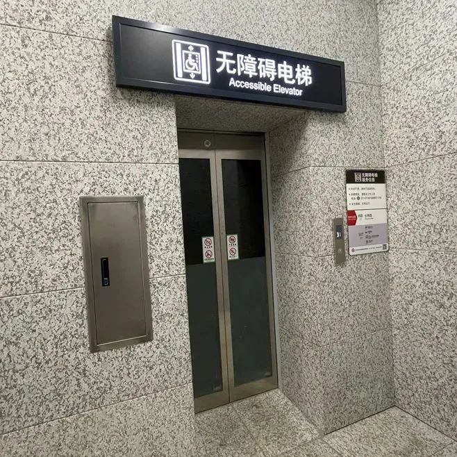 目前4、5号进出口的标识、监控等设施已全部安装完毕,上下扶梯都处于自动运行状态,出入口都配置了无障碍电梯,无障碍通道、扶手等设施设备,为残障人士、老人等有需要的人群提供服务。