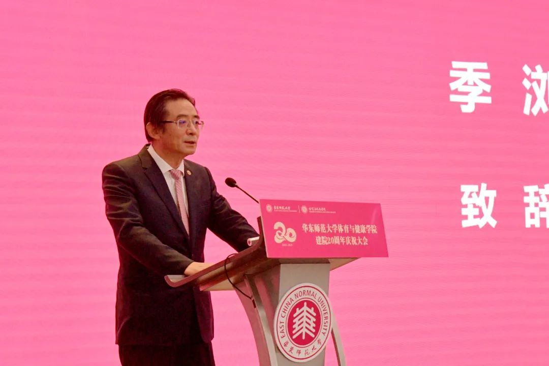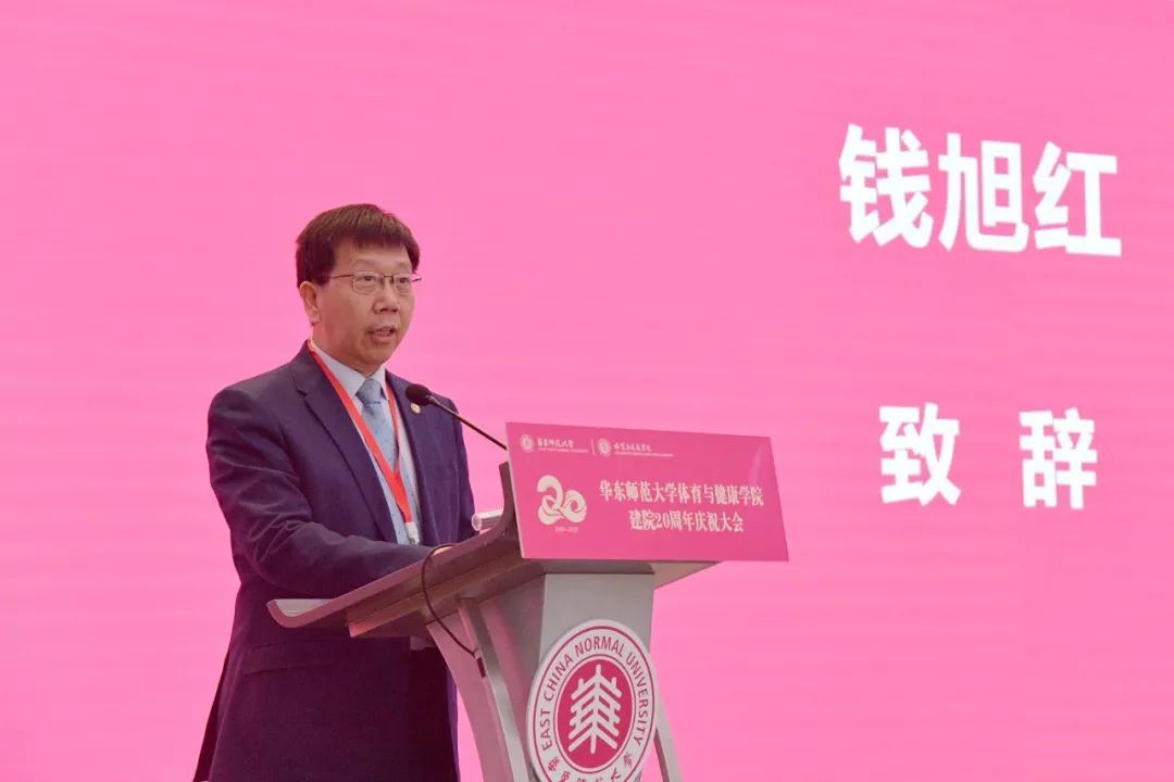 校长钱旭红在致辞中指出,华东师大体育与健康学院建院二十年来,始终坚守“求实创造,为人师表”的校训,以“文武双全、专长突出、素质高强、追求卓越”为院训,坚守育人使命,紧密对接国家战略、回应时代发展所需,服务城市本土发展,为上海和国家教育事业、体育事业改革发展作出了重要贡献。他希望体育与健康学院传承荣光,接续奋斗,进一步对标卓越标准,不断提升学院核心竞争力,为教育现代化、体育强国和健康中国提供更多华东师大解决方案。钱旭红表示,学校将一如既往地大力支持体育与健康学院发展,为中国体育学科提升国际影响力和构建国际话语体系贡献力量,为中国体育事业走向世界、影响世界,提出可供全球体育治理借鉴的中国智慧和中国方案贡献力量。