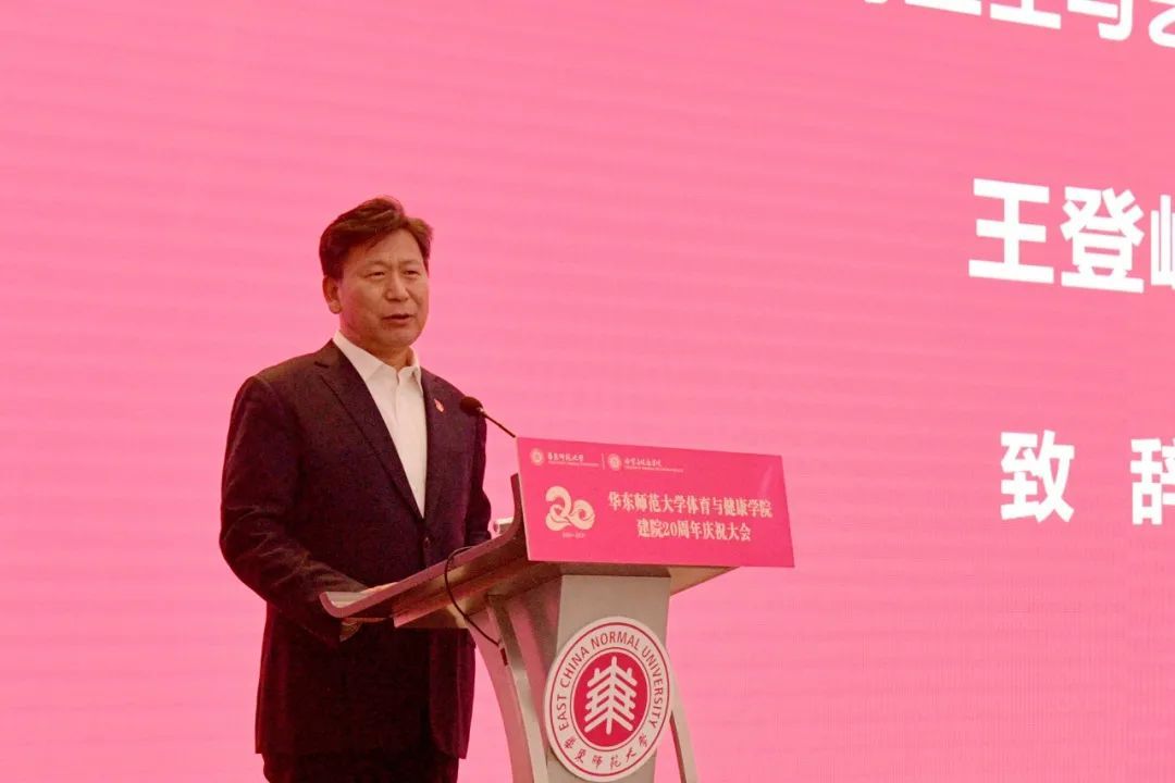 王登峰在发言中表示,华东师大体育与健康学院在过去20年间教学、科研、人才培养、国际交流合作中取得令人瞩目的成就。体育与健康在教育方面是重要的手段、领域和目标,华东师大体育与健康学院辉煌成绩是践行党对体育、学校体育的重要指示精神的体现。王登峰指出,在面对百年未有之大变局,前行在第二个百年奋斗目标赶考之路上,体育、广大青少年的体质健康和健全人格将成为中华民族伟大复兴的重要因素。他希望华东师大体育与健康学院未来在教学、科研、人才培养、国际交流合作中继续发挥“领头羊”“领头雁”的作用,在体育建设中发挥更大的作用,做出更大的贡献。