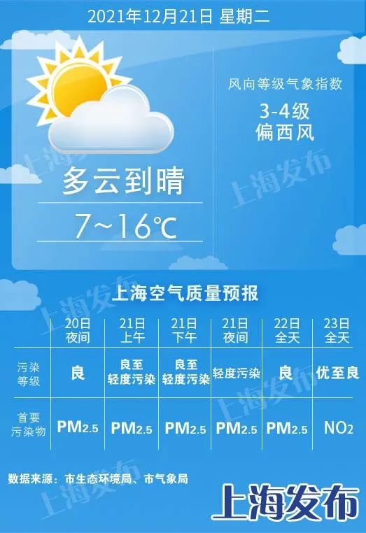 明天进入冬至,也是“进九”的第一天,申城依然阳光灿烂,气温稳中略升,最低7度,最高16度。早晨气温偏低,白天暖意融融,偏西风3~4级,天气静稳,不利于颗粒物疏散,空气质量不佳。白天良到轻度污染,夜间轻度污染,敏感的朋友请注意防护。