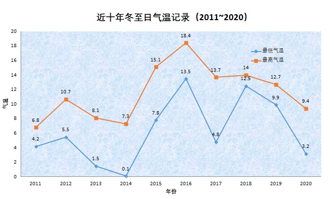 这样暖和的冬至日罕见吗?根据上海近十年的数据来看,冬至日当天,有6年最高气温超过10度,2016年甚至达到18.4度,有小阳春之感。2014年最寒意袭人,最低气温接近0度。