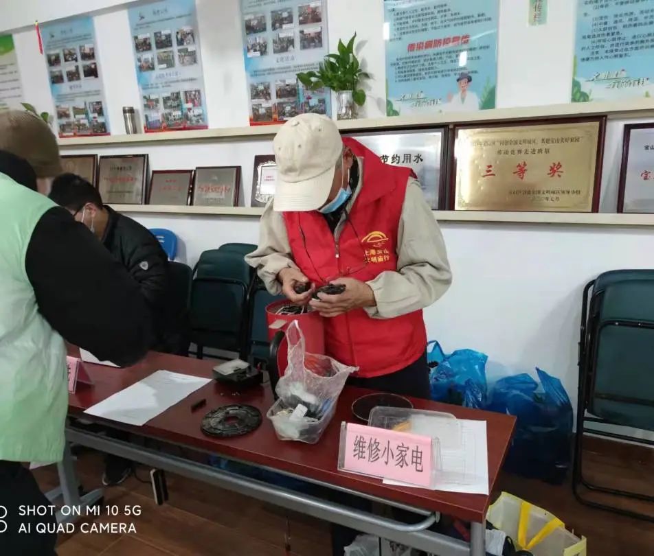 活动还未开始,已经有居民前来取号,在测血糖和理发的摊位前有序的排队。在一旁维修小家电的师傅正有条不紊地工作着,居民徐阿姨把家中无法正常烧水的电热水壶拿来维修,修理师傅先仔细查找存在的问题,并向居民说明损坏原因,在维修的同时,还耐心讲解小家电的日常使用和保养方法。最后,损坏的电热水壶在师傅的巧手下又“重获新生”。