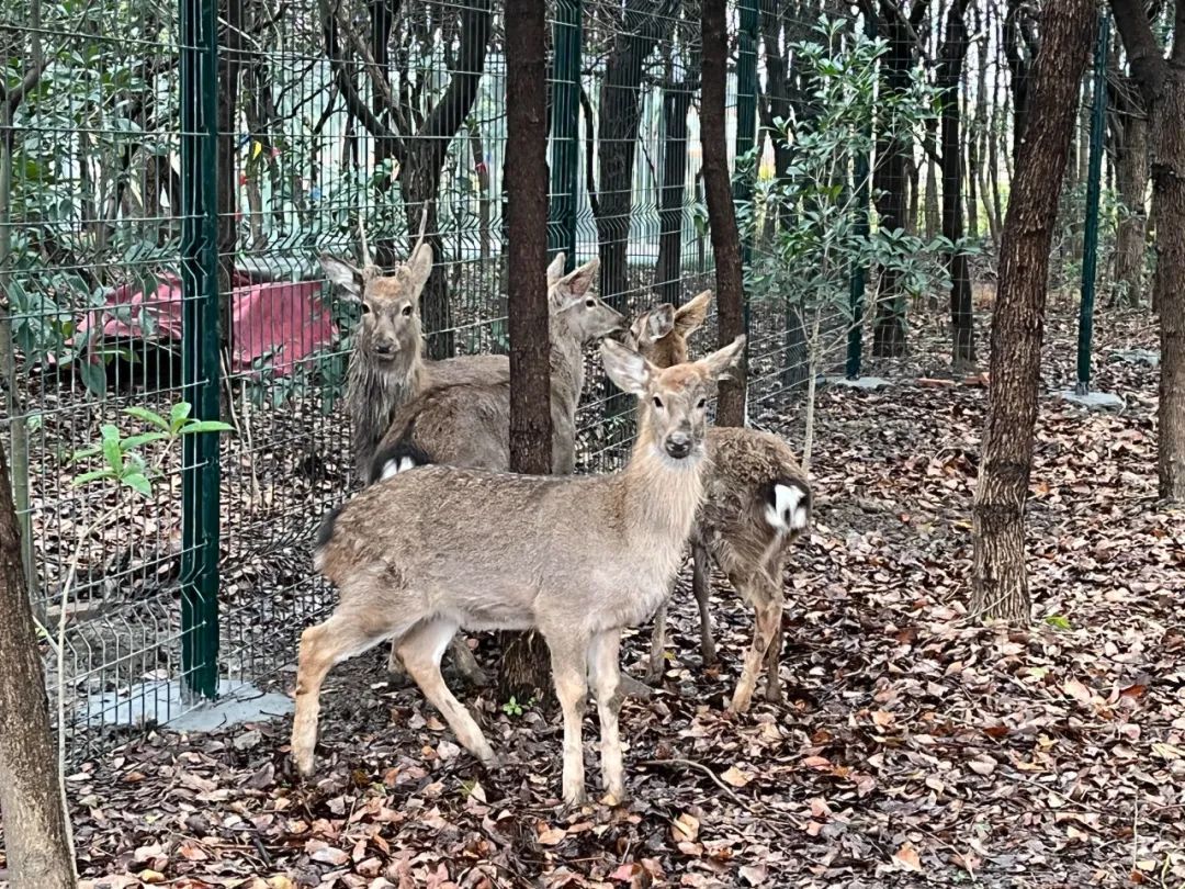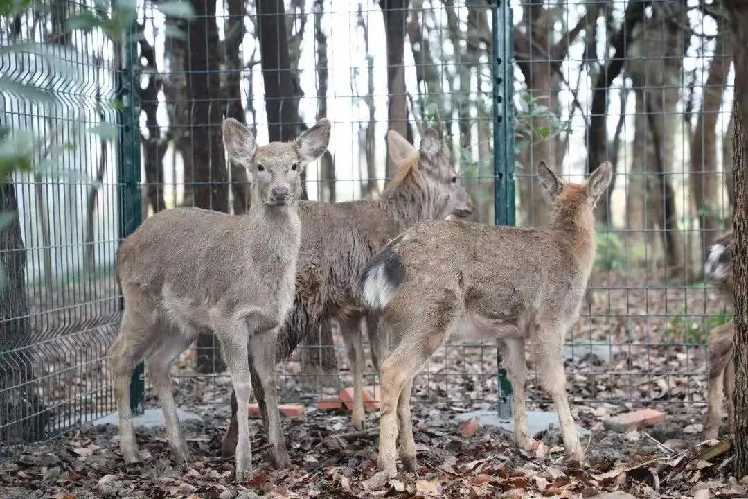 下午1点,六只梅花鹿在护送下分别抵达自己的新家。来到了新环境的小鹿们,懵懵懂懂开始熟悉起自己的新窝,时而漫步在林中,时而奔跑,时而停下觅食,灵动而可爱。这也深深吸引了第一次近距离接触梅花鹿的村民们。一位阿伯举起手机对着小鹿们拍下一张照片,“噢哟,以前鹿还是在动物园里看到的,到我们乡下农村里来的头一次,真是件新鲜事呀。”