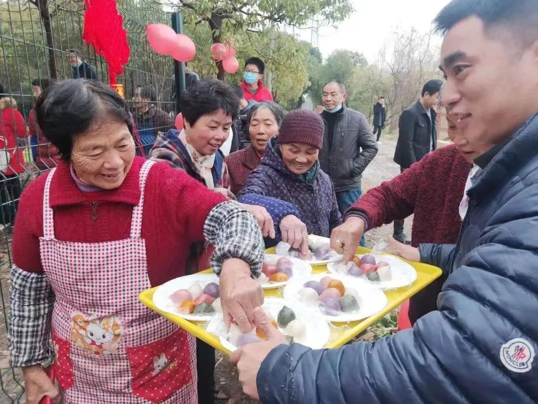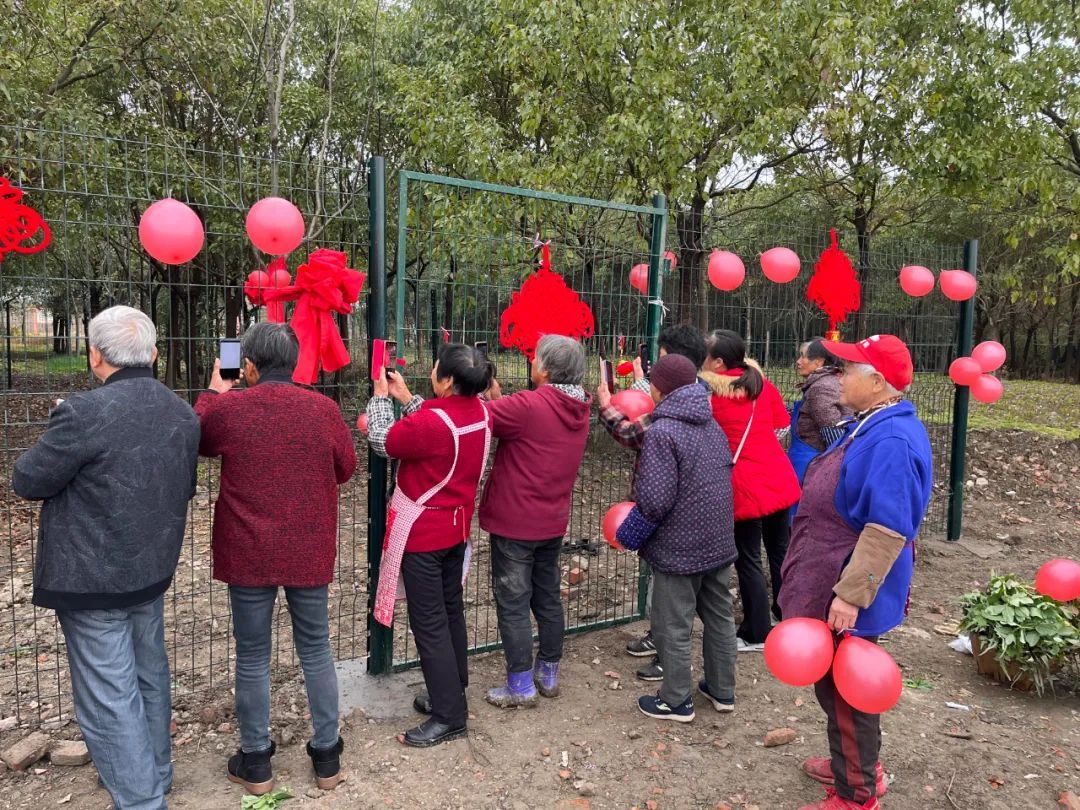 一大早,作为梅花鹿的“娘家”光明村就筹备好了待嫁之礼,另一头“迎娶”的华严村、沈陆村则分别在他们的橘米公社、天目果梦想城内,围筑起“新窝”,甚至还妆点上了充满喜庆氛围的中国节、红灯笼等,做足准备。来自华严村橘米公社的村民们更是手拿大红花,揣上喜糖,甚至端着五彩元宵,早早聚集到公社,翘首以盼,见证萌鹿的到来。一位老村民指着这些喜庆的装扮说:“这是我们老百姓自己自发布置的,接‘亲’嘛,就像接新娘一样把小鹿接过来。”