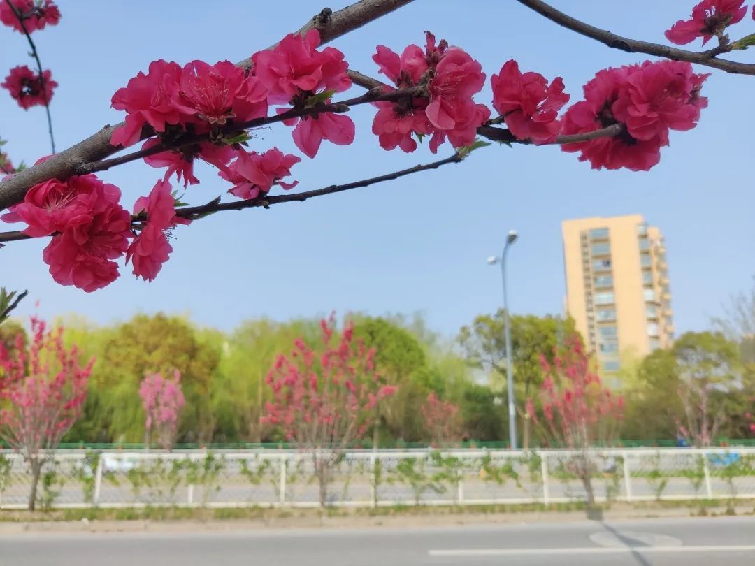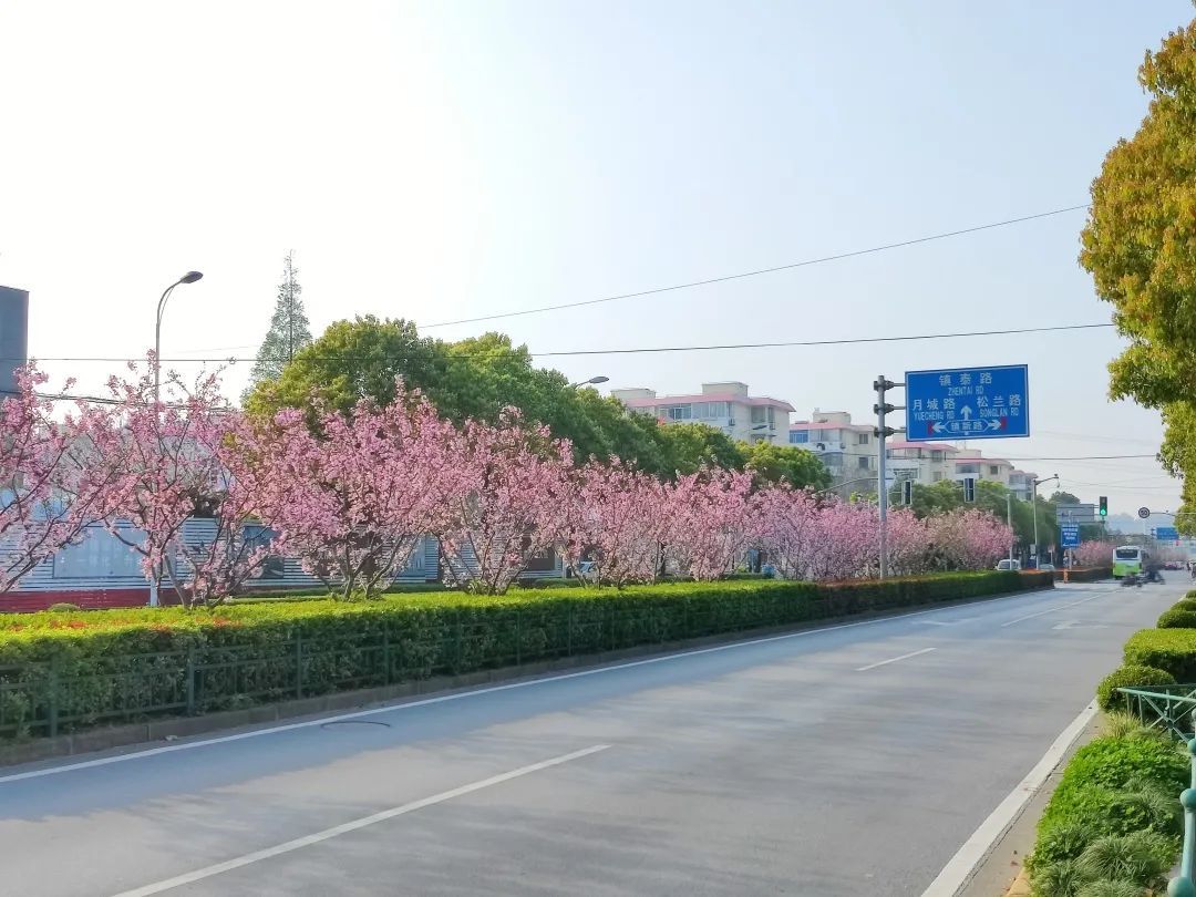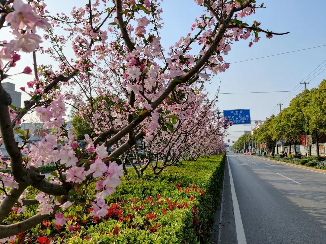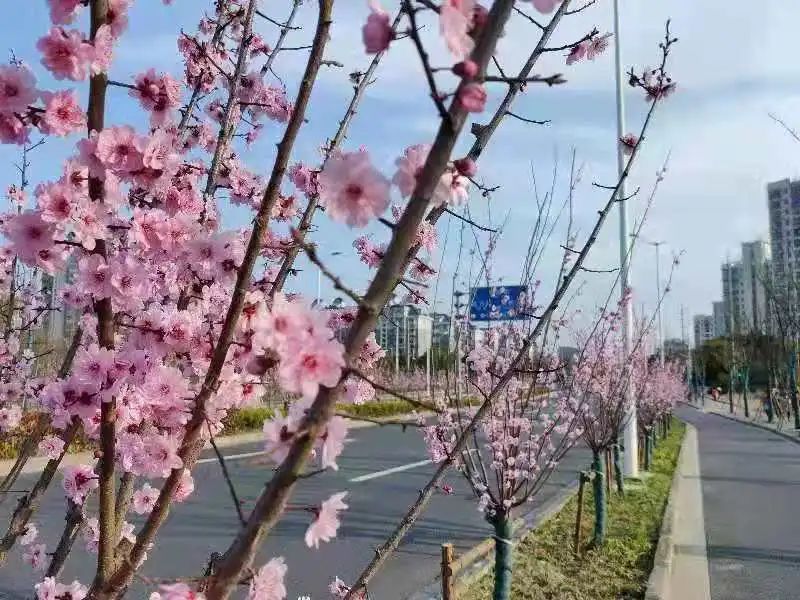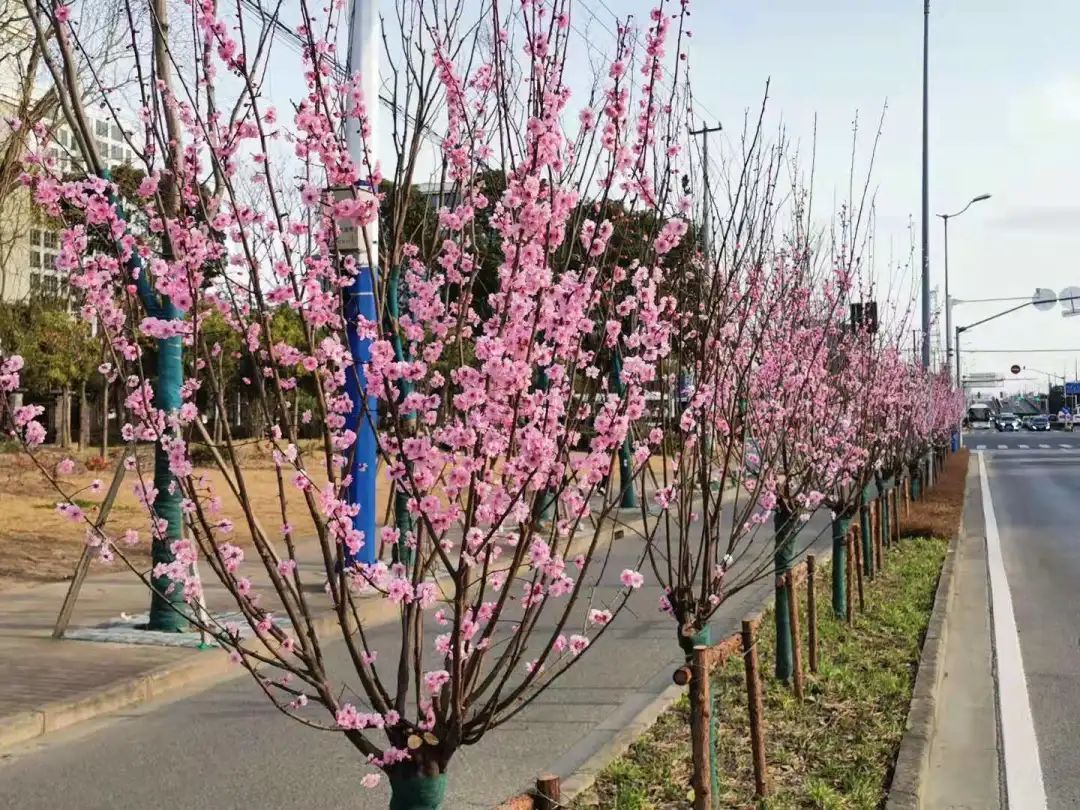 铁山路为双向四车道,长900米,行道树为榉树,中分带和机非隔离带成规模种植美人梅,配植开花地被萱草,营造出春季繁花似锦、秋季色彩艳丽的景观道路。