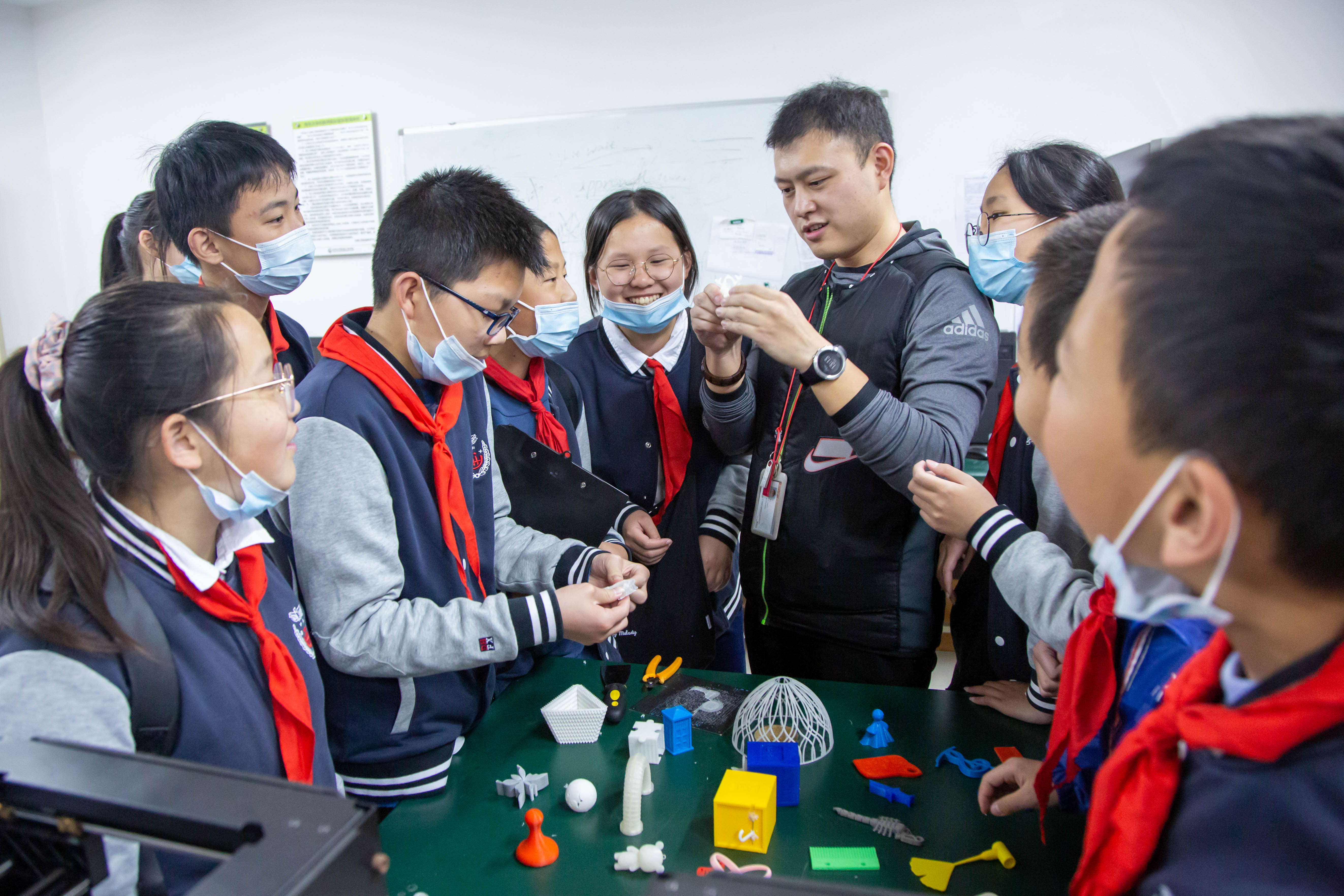 科技发明源于生活需求,科技成果服务生活。今年4月,部分学生在参观东华大学机械学院时,对3D打印技术表现出极大的兴趣。于是,带队指导教师蔡丹萍便启发大家:“我们学校也有3D打印教室,还有3D打印社团,小学的3D打印笔、中学的3D建模,大家还有印象吗?”在她看来,关注学生的兴趣点并引导大家利用身边的资源开展项目化学习,是作为教师该有的敏感度。