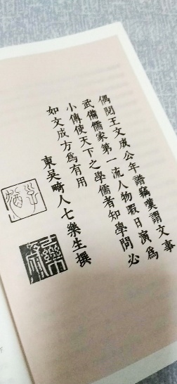 阳明王先生天挺间出……功业、理学盖宇宙百世师矣。当时及门之士,相与依据尊信,不啻三千之徒。今没才三十年,学亦稍稍失指趣。高弟安成东廓邹公辈相与绘图勒石,取先生平生经历之所及,与功用之大,谱而载焉。……余少慕先生,十四岁游会稽,而先生已没。两官先生旧游之地,凡事先生者皆问而得概焉,然不若披图而溯之为尤详也。以余之尤有待于是,则后世可知,而邹公之意远矣。