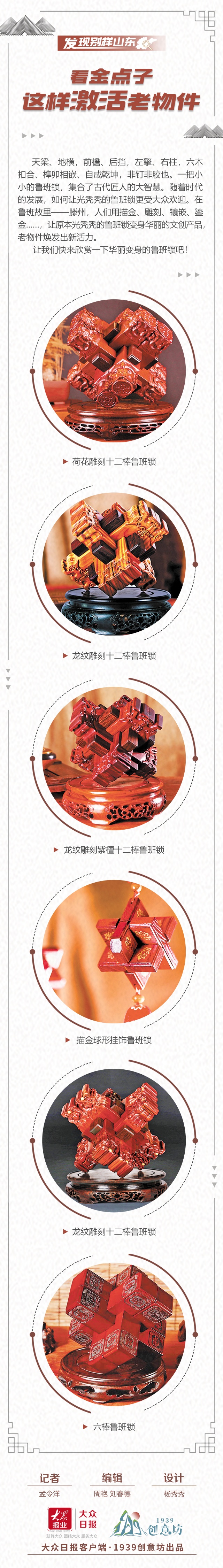 “鲁班锁是老祖宗留下来的宝贵财富,我之所以一直设计制作各种不同样式的鲁班锁,是因为发现鲁班锁流传并不太广泛,甚至有的孩子都没见过鲁班锁。作为滕州人,我想将这门技艺传承下去,让优秀的传统文化感染更多人。”李浩这样说起开发设计鲁班锁的初心。
