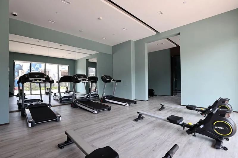 楼与楼之间有的是以绿化间隔,有的还铺设了专业塑胶跑道,放上了篮球架,具备了篮球场、羽毛球场等功能。小区有自己的健身房,跑步机、哑铃、椭圆机样样俱全。这些都非常适合年轻人爱运动的需求。