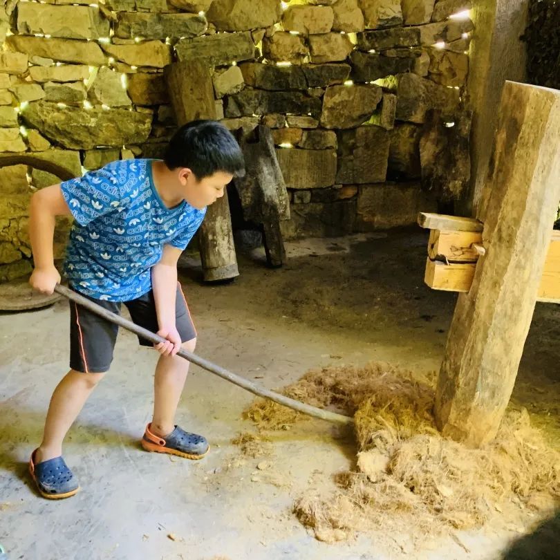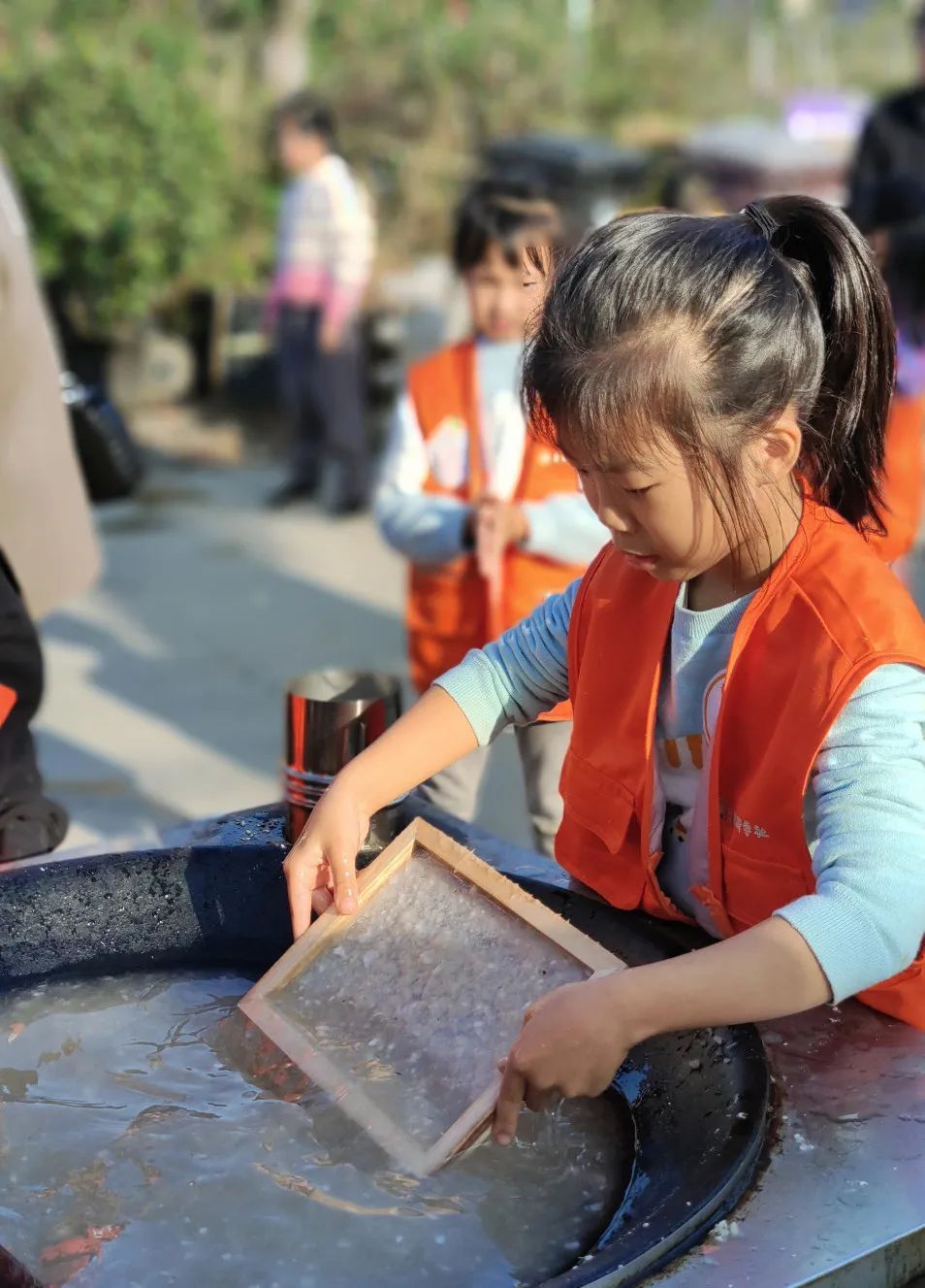 拉卷尺田野测量,抡砍刀收蔗根,大火炉熬浆,造纸术现用……孩子动手动脑,也动笔动刀,就是来真的。