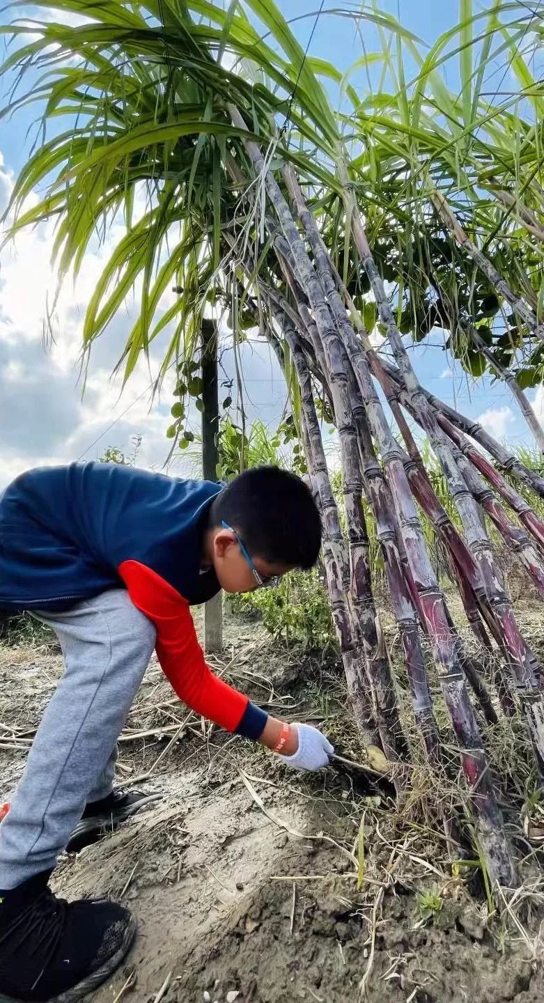 顺应时节,在甘蔗榨季,让孩子们多一天的田间劳动,砍砍甘蔗,在收获喜悦的同时,也亲身感受一下蔗农的劳作之不易,多一份同理心。