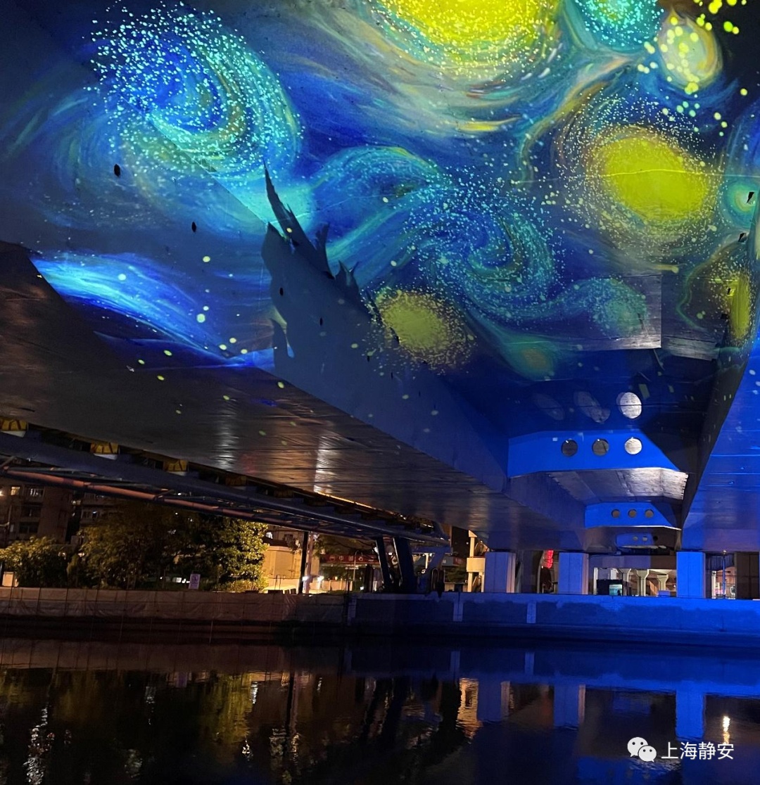此外,南北高架桥底通过最新的数字技术,将钢筋水泥装饰成梵高的“星空”;普济路桥-安远路采用光环下照的照明方式,打造出月光下洒的光影之感;长寿路桥-远景路段则通过流光交织,将两幢白天不起眼的建筑,装点得格外雅致。