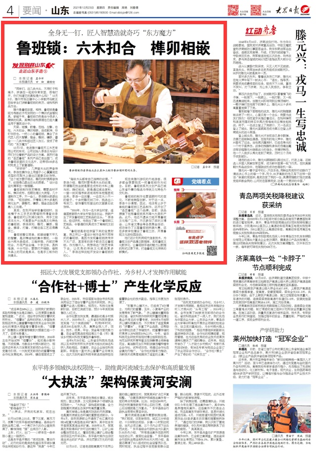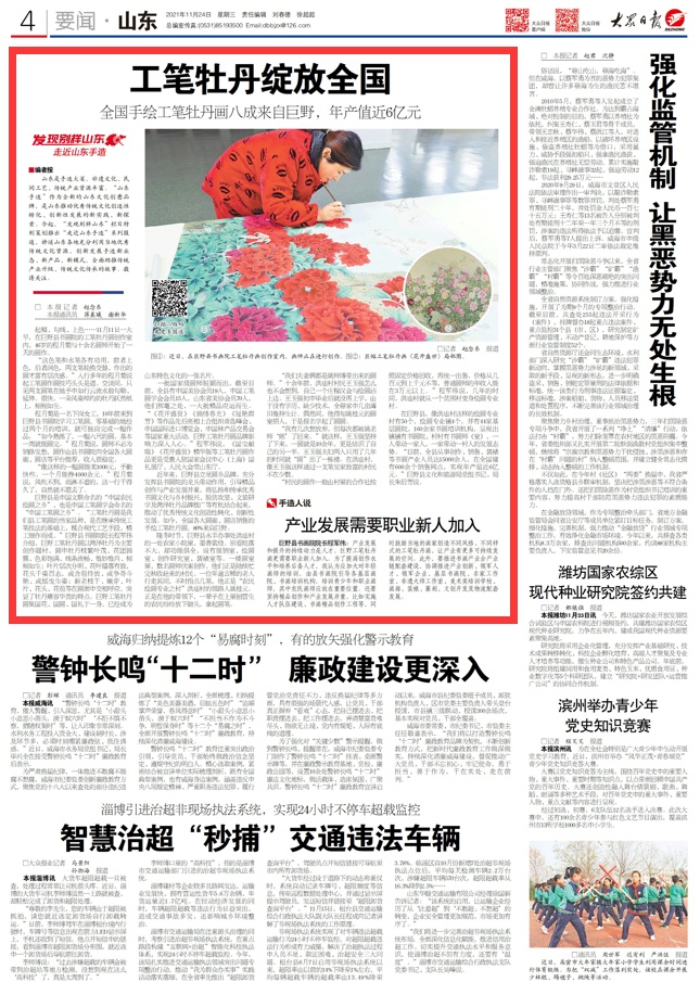 近日,大众日报推出“发现别样山东•走近山东手造”系列报道,带您走近山东手造,探访山东手造背后的用心、匠心、创心,领略手造人指尖下的风景……