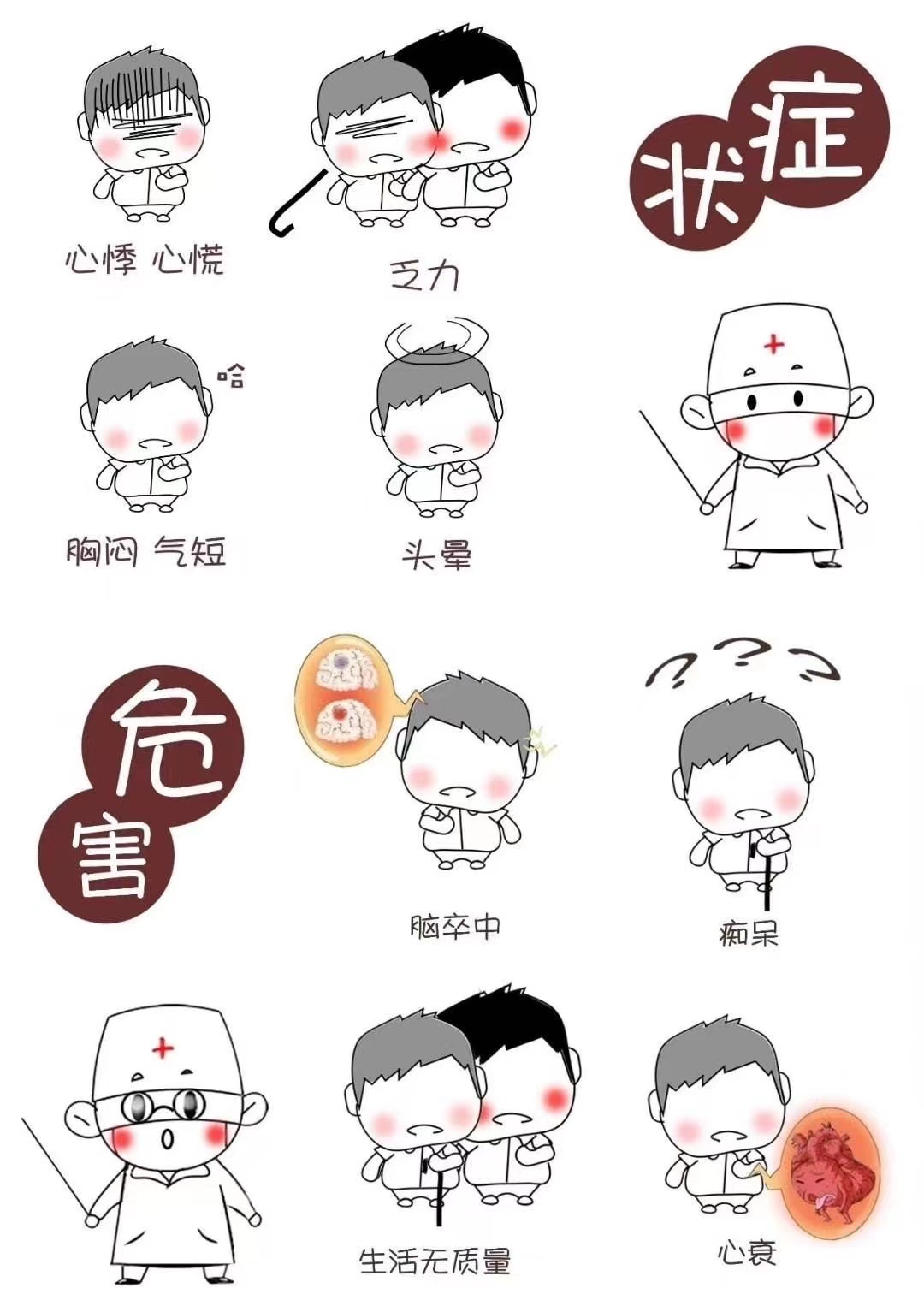 脑卒中、心力衰竭、痴呆、生活质量下降、死亡风险提高。