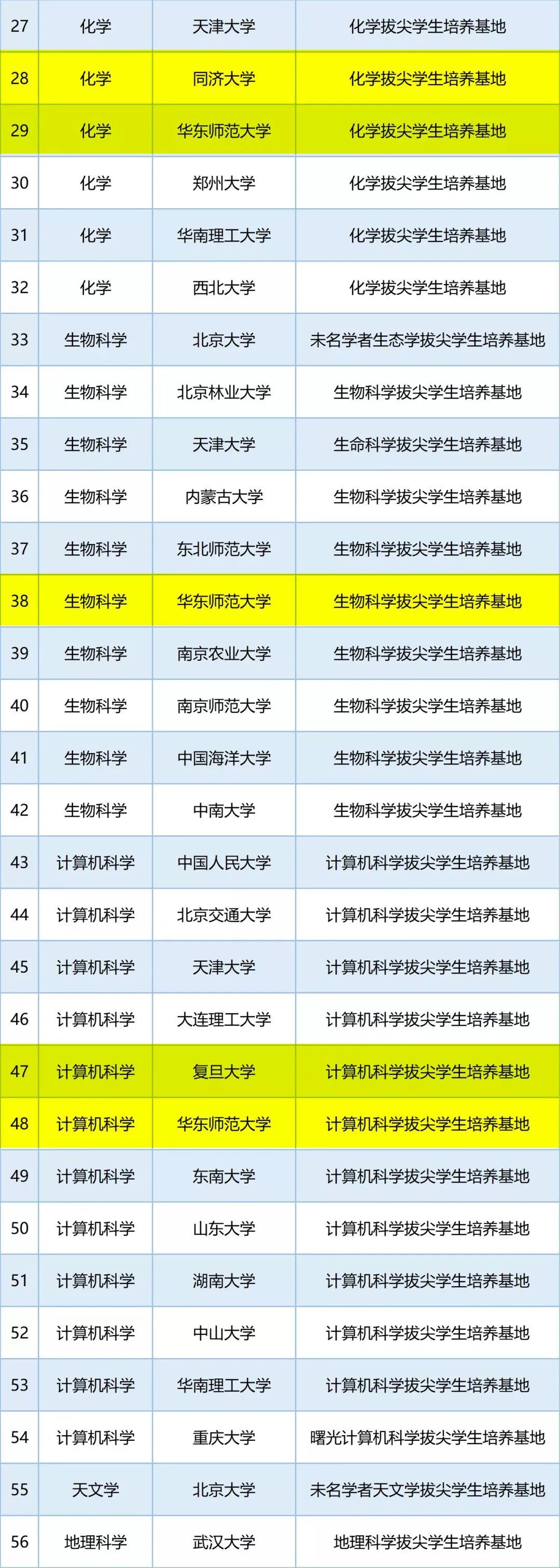 三年里,教育部已陆续公布了三轮基地名单。其中第一批上海有4所高校15个基地入选;第二批上海共有4所高校13个基地入选;第三批上海共4所高校8个基地入选。