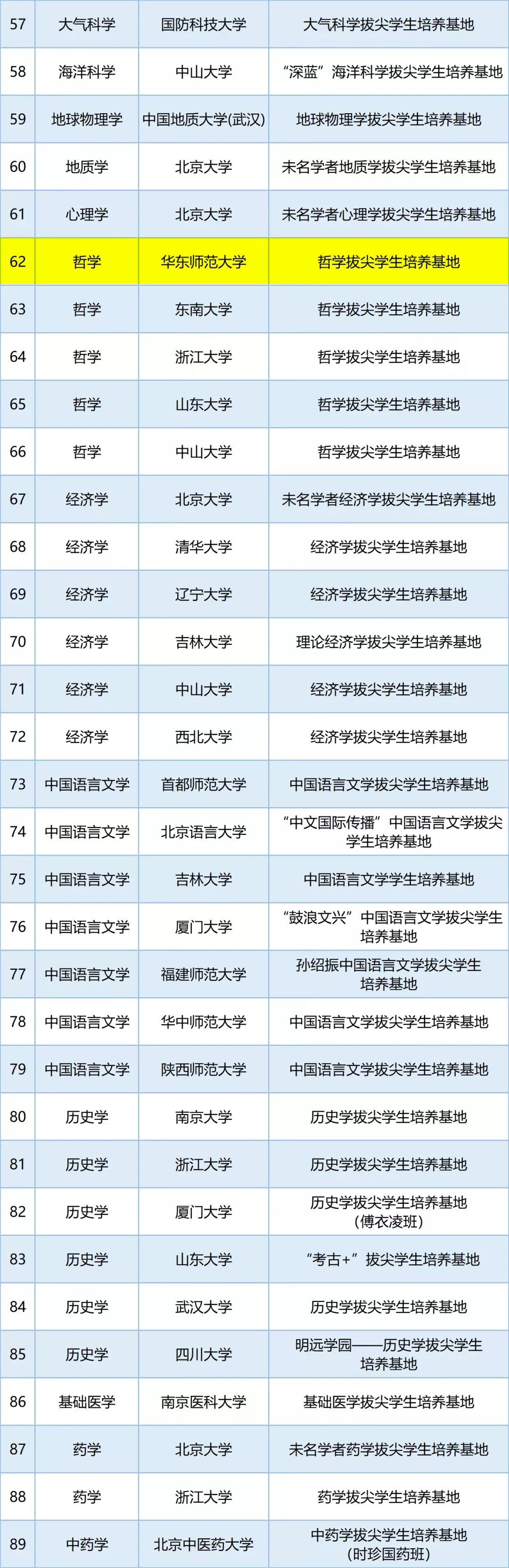 基础学科拔尖人才培养计划2.0在数学、物理学、化学、生物科学、计算机科学的基础上,增加天文学、地理科学、大气科学、海洋科学、地球物理学、地质学、心理学、基础医学、哲学、经济学、中国语言文学、历史学。