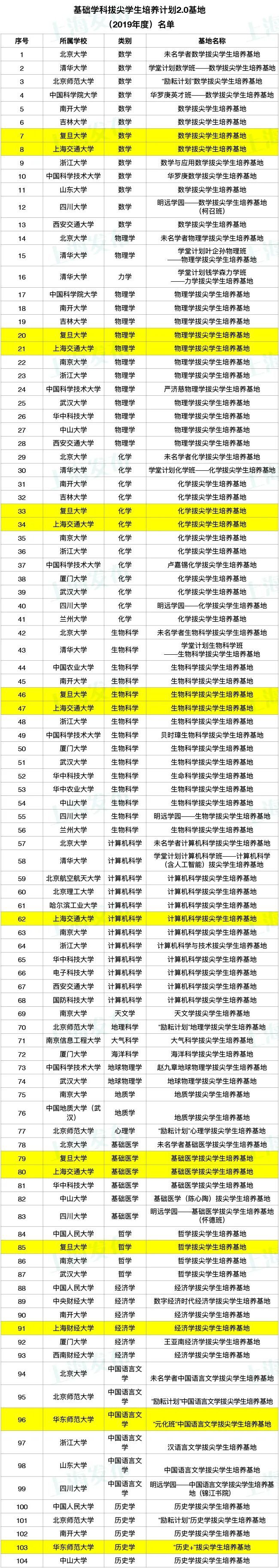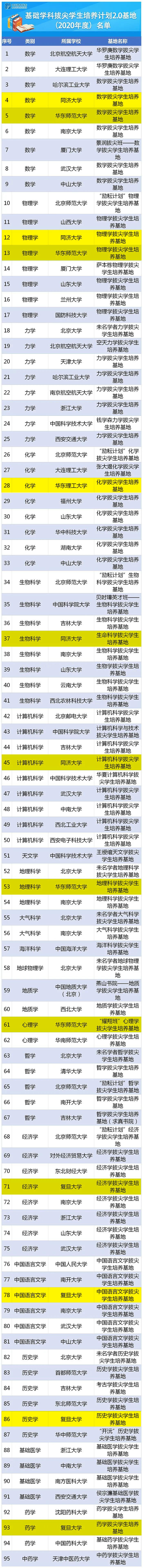 基础学科拔尖学生培养计划2.0基地(2020年度)名单