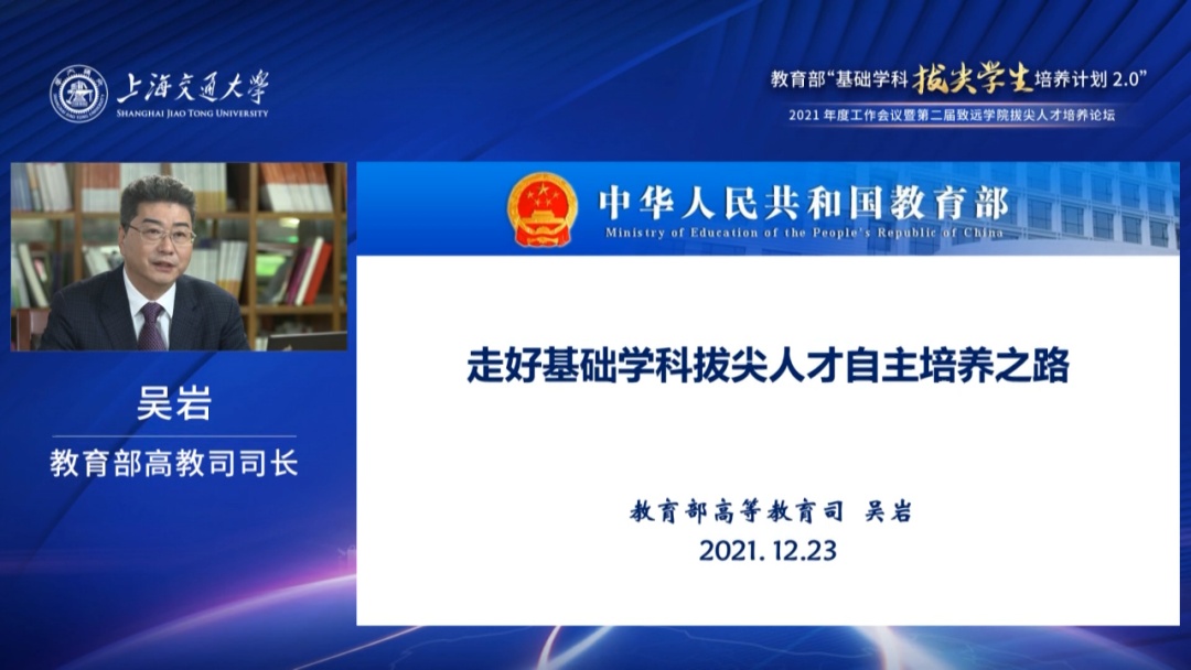 昨日(12月23日),教育部“基础学科拔尖学生培养计划2.0”2021年度工作推进会暨第二届致远学院“拔尖人才培养论坛”在上海交通大学举办。