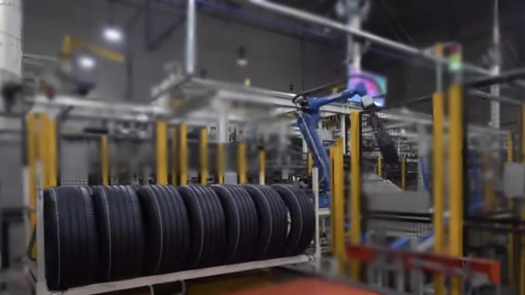 米其林上海工厂机器人自动堆垛轮胎成品