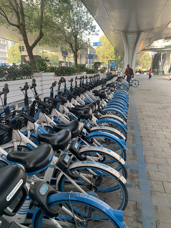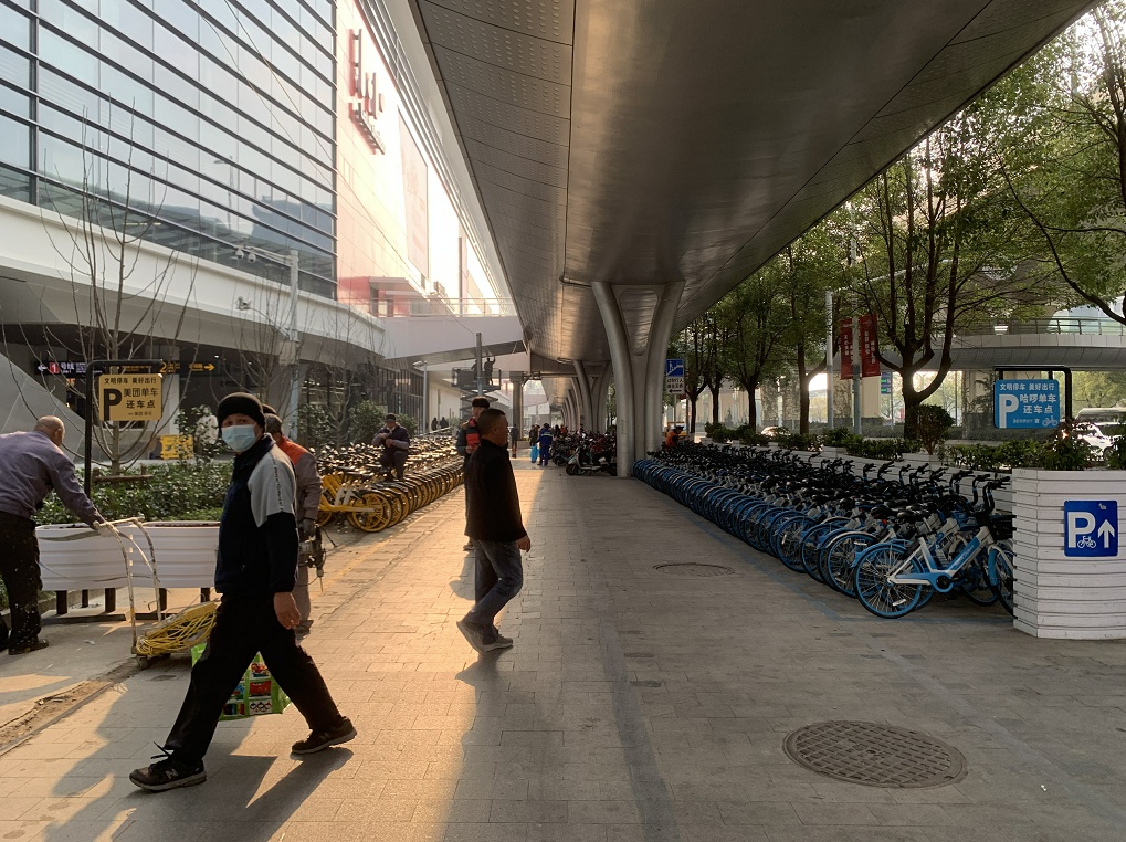“共享单车是非机动车停放的新生事物。我们梳理了市场,发现目前主要有哈啰和美团两个单车品牌,就根据车身颜色划设停车区域。同时,两家共享单车企业利用电子围栏技术设置禁停区,引导市民规范换车至集中停放点。”相关负责人表示。