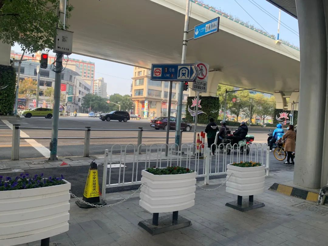 在莲花路地铁站改造期间,南侧被施工围墙挡着,只有北侧划上了停车线,停车需求供不应求,乱停放成了城市管理的痛点。地铁站改造完成后,梅陇镇城运中心与地铁方协商,并释放部分南侧空间,划线用于非机动车停放,进一步满足停车需求的同时。