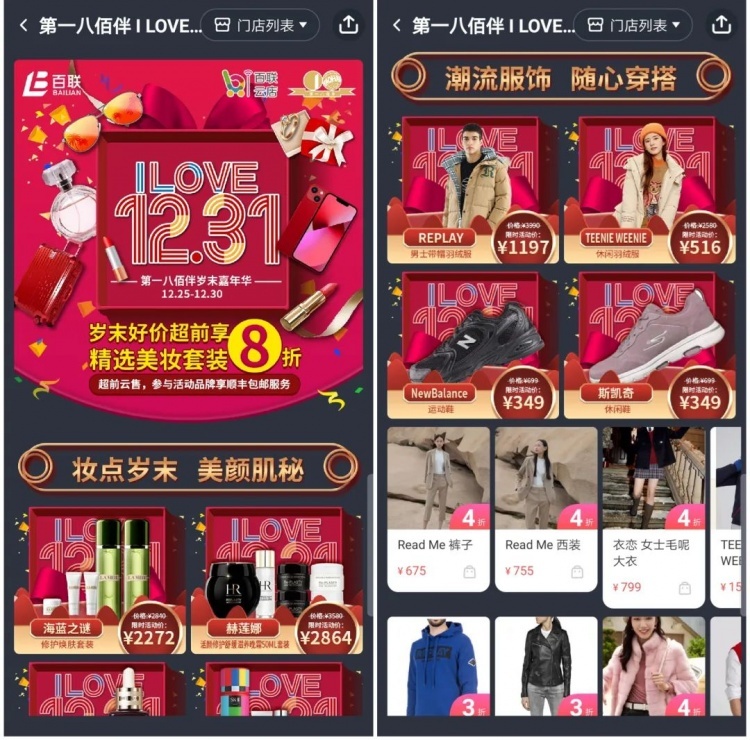 第一八佰伴岁末嘉年华向来“含金量”十足,不仅是上海市民的“保留节目”,同样也是长三角消费者心中的“重头戏”。受到疫情影响,不少消费者无法来沪亲临现场,第一八佰伴突破时间和空间的限制,开创全新模式——12月25 日-12月30日通过“i百联”线上云店提前开启“超前云售”,精选25家国际美妆大牌,超100个超值套装及单品,还有服饰、运动、儿童、家居等100余个精选热门爆款,优惠最低2折起,明折明扣为消费者带来货真价实的购物体验。
