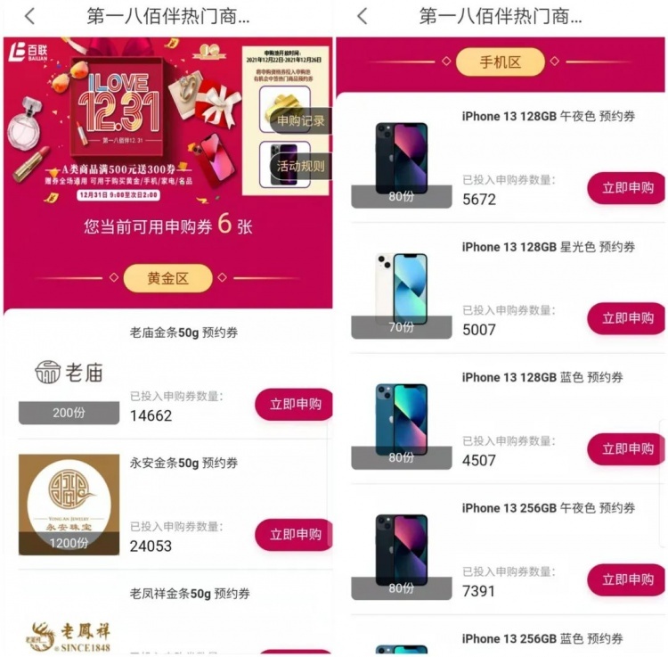 凡于2021年1月1日至2021年11月30日期间,在百联股份上海地区门店有消费记录(含线上)的银卡及以上会员,将在会员卡包内获得热门商品申购资格券(银卡会员1张、金卡会员2张、钻石卡会员3张),在2021年1月1日至11 月30日期间在第一八佰伴有消费记录的会员还将另外获得10张申购资格券。