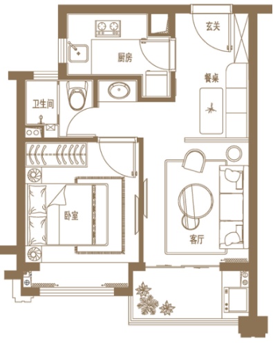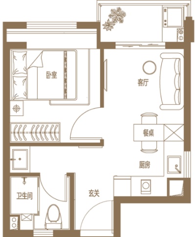 建面约35㎡的一室户效果图