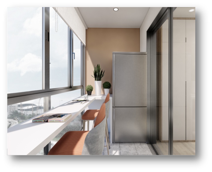 30㎡卧室及吧台效果图