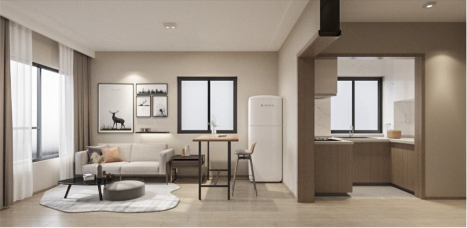 在建中的紫竹租赁住房由上海新黄浦实业集团开发建设,设计从艺术氛围浓厚的苏州河、具上海历史风情特色的老街建筑以及极具现代感的浦江建筑群元素出发,挖掘人文历史韵味,以文艺复古和知性为设计理念,定制了6类多元化户型空间。