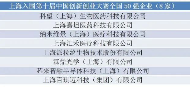 在上海的8家50强企业中,生物医药占据了半壁江山,这彰显了上海在生物医药领域的创新优势和实力。