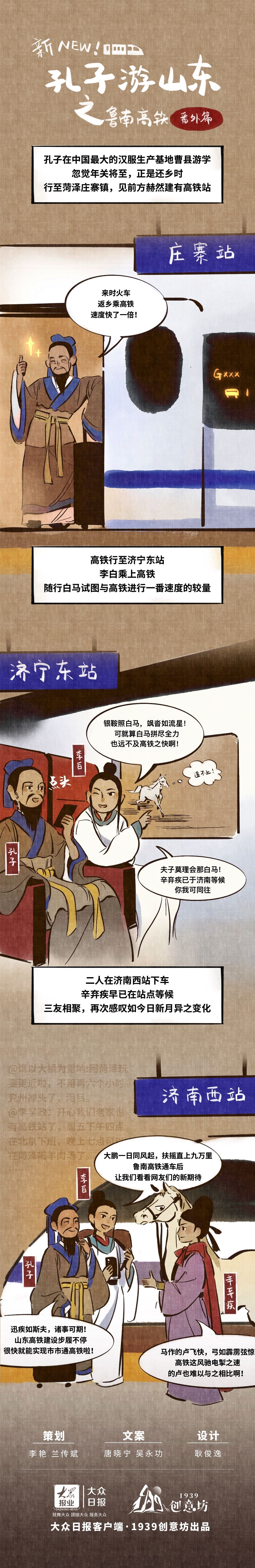 孔子和李白乘高铁抵达济南西站。