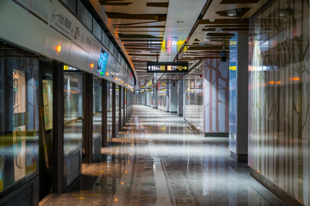 车站设置了环境监测系统,车站内的监测内容包括公共区域及关键场所的PM10、PM2.5、CO2、温度、湿度,卫生间的异味(氨),通风管道积尘量,空调系统送风质量、厂界(车站边界)的噪声,冷却水的浊度、水温、pH等,管理平台面通过线路级和车站级环境监控,实现了统计分析、预测预警等功能。