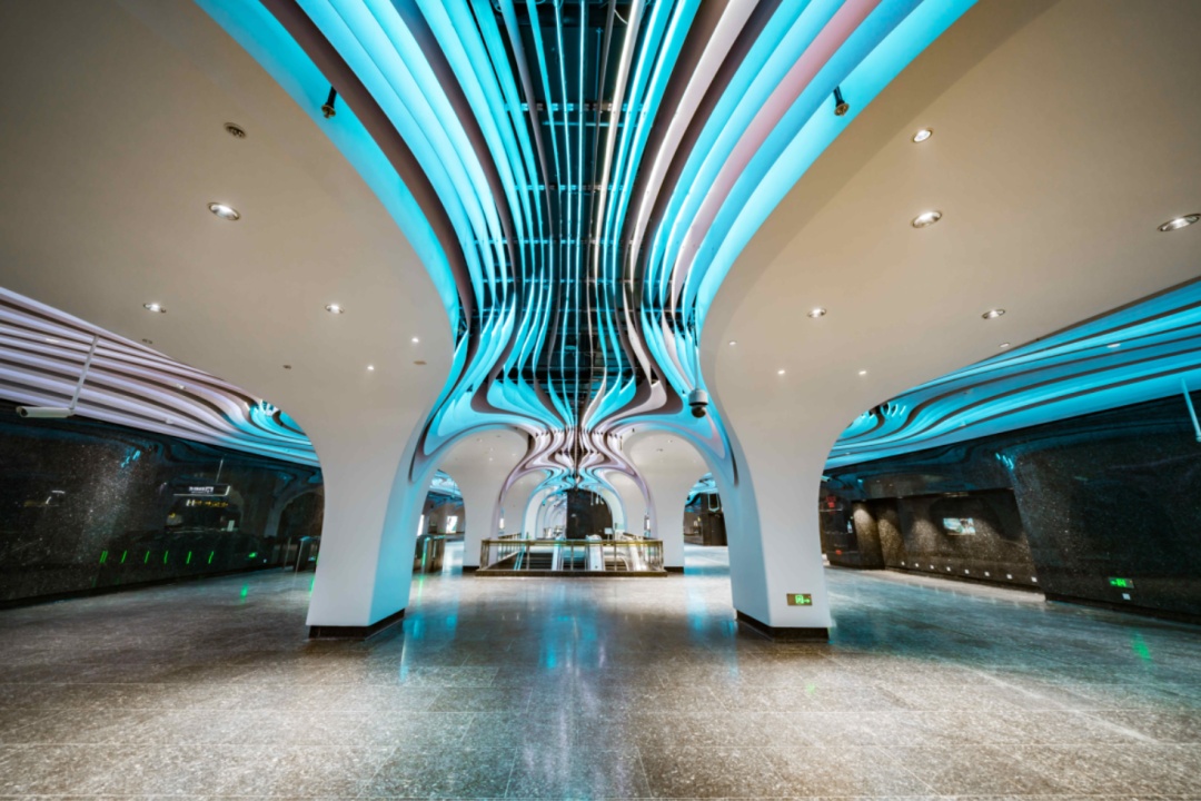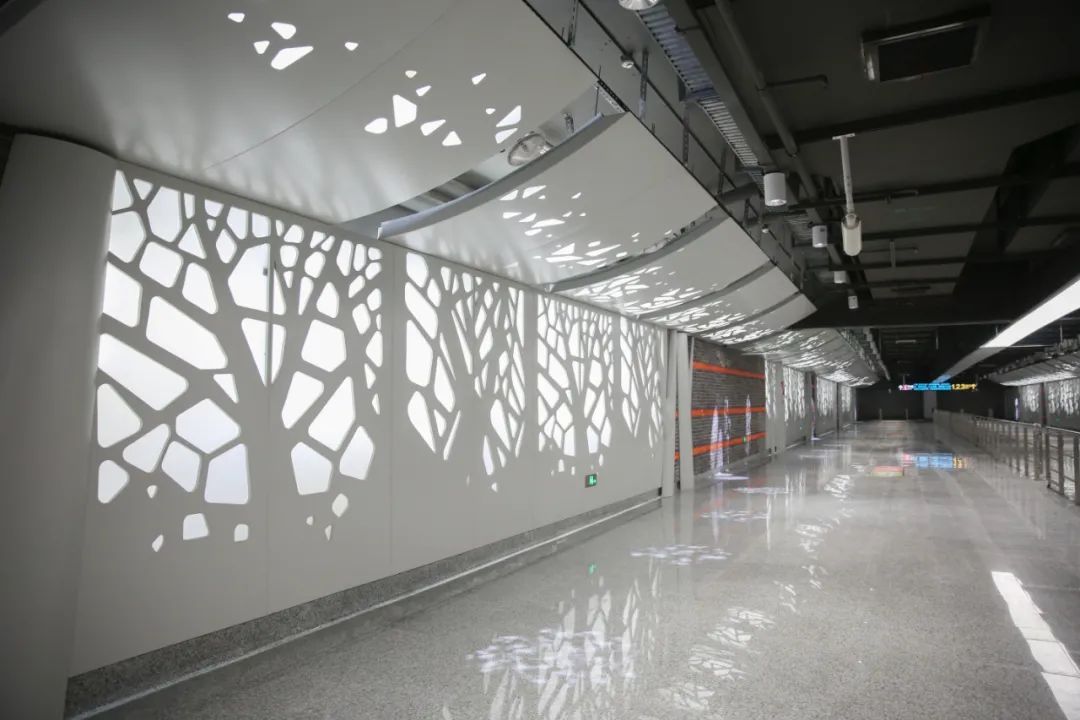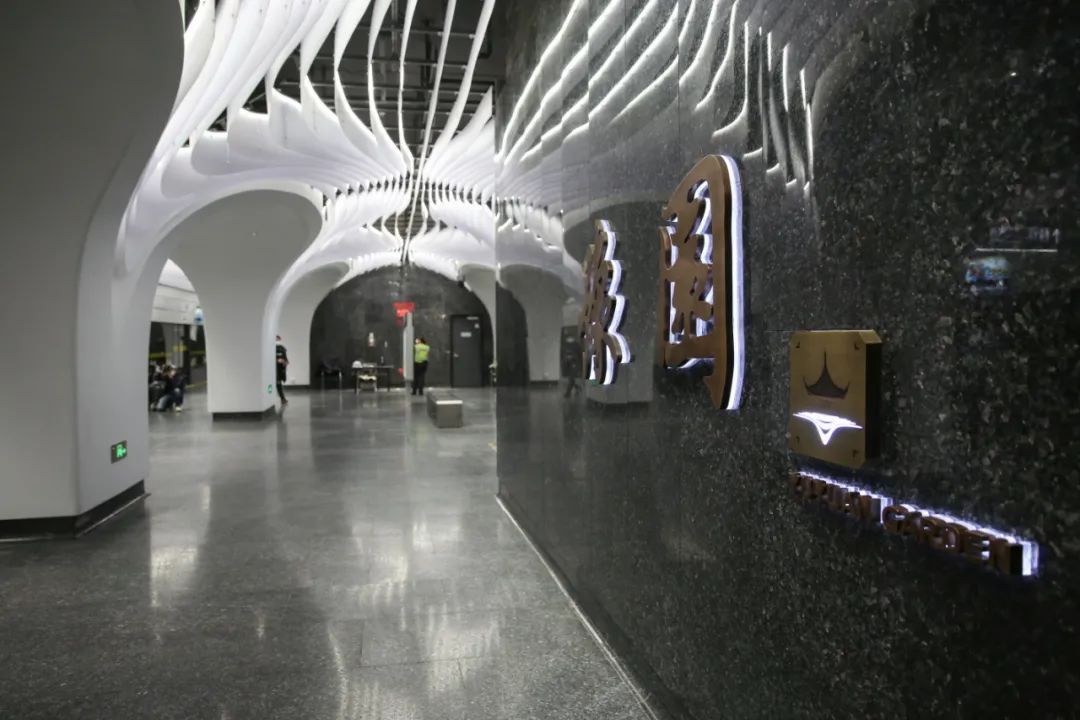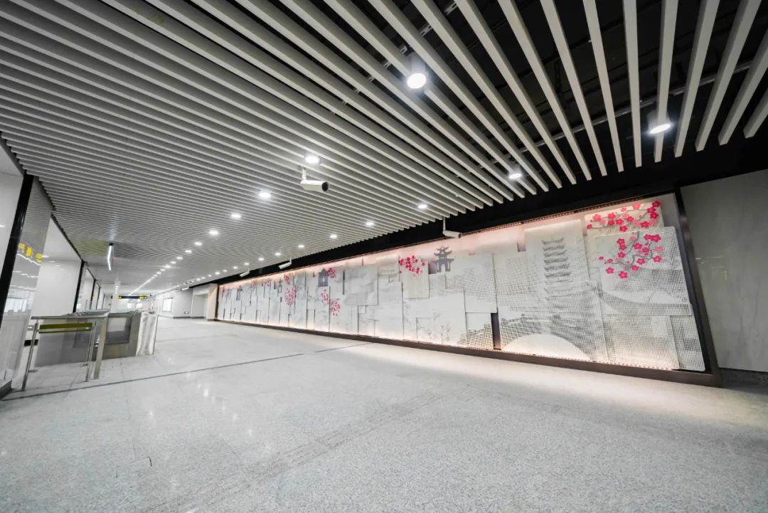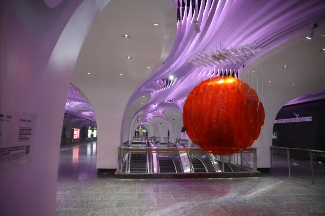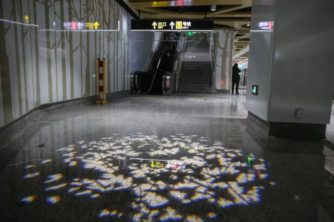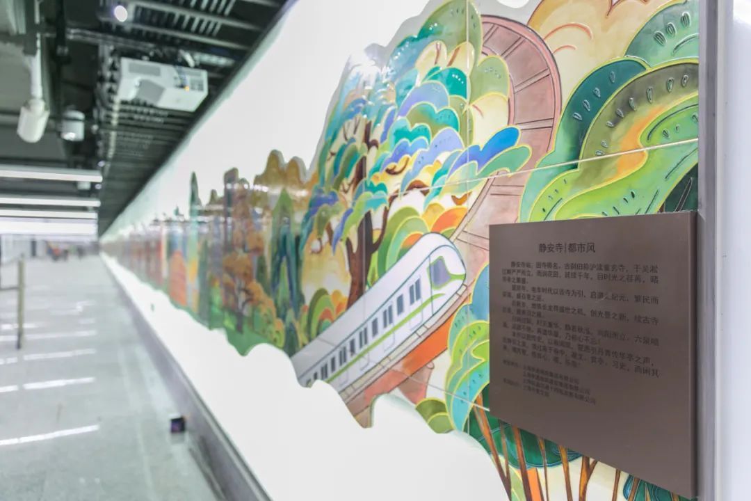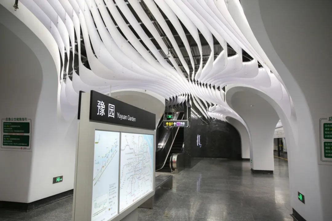 空间更艺术:车站设计引入空间艺术和艺术空间的概念,如豫园站的“上海脉搏”和一大会址·黄陂南路站的“黄陂疏影”车站主题艺术装修、陆家嘴站换乘通道的“今朝踏浪”艺术装置、把二维的平面转化成三维的空间艺术,集功能性、人文性、艺术性于一体,为城市留下可阅读的,有情、有味、有品的城市第二空间,形成了别具特色的装修主题及艺术装置;