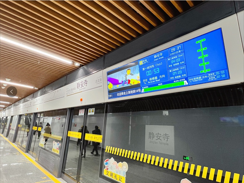 “门上有乾坤”:14号线是上海轨道交通领域内首次尝试站台门与PIS系统巧妙“合体”,在部分车站创新采用将PIS系统高清屏与可调通风站台门一体化设计,既避免了PIS屏容易被遮挡的情况,还提升了装饰美观度,并与不同车站整体装修风格保持了一致,强化了乘客体验感;