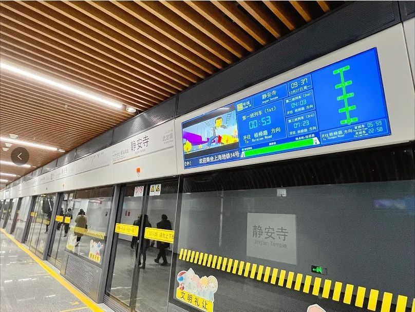 “门上有乾坤”:14号线是上海轨道交通领域内首次尝试站台门与PIS系统巧妙“合体”,在部分车站创新采用将PIS系统高清屏与可调通风站台门一体化设计,既避免了PIS屏容易被遮挡的情况,还提升了装饰美观度,并与不同车站整体装修风格保持了一致,强化了乘客体验感。