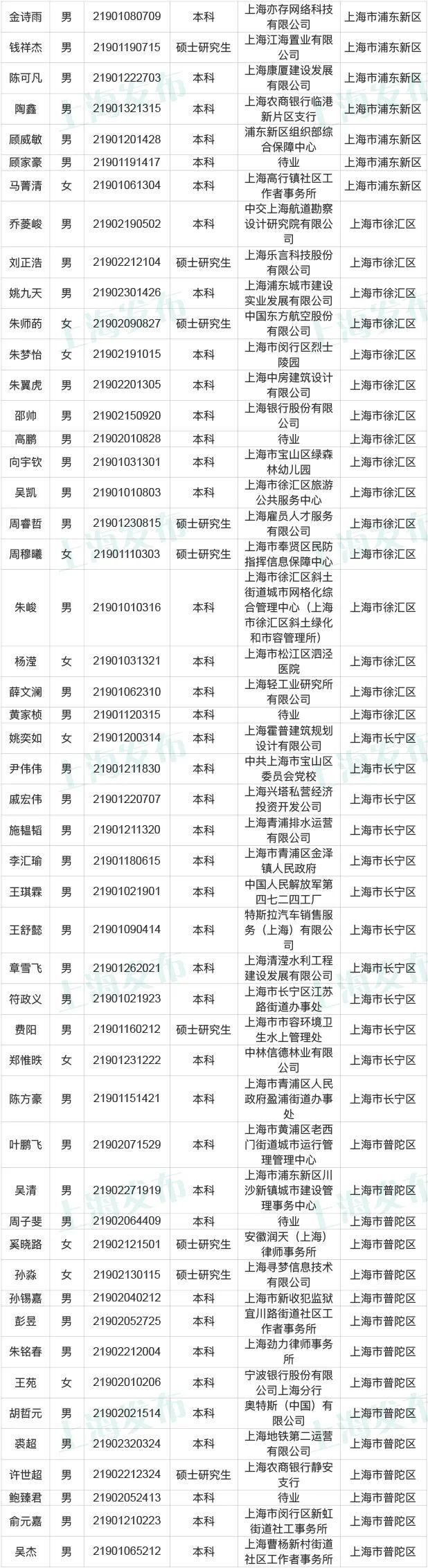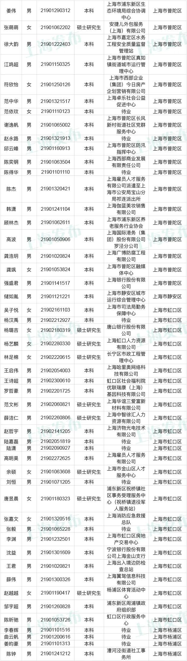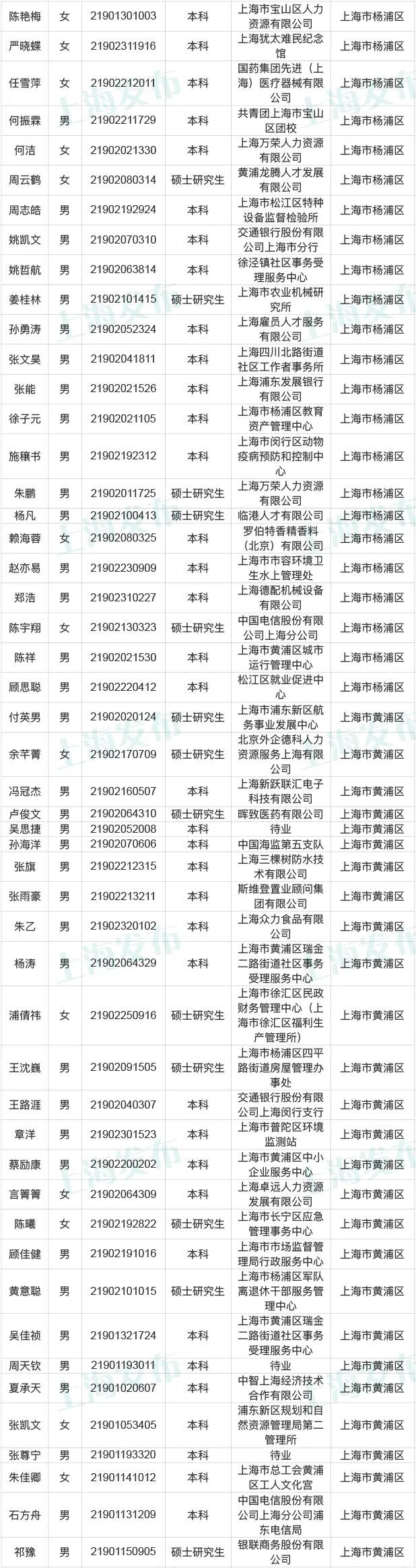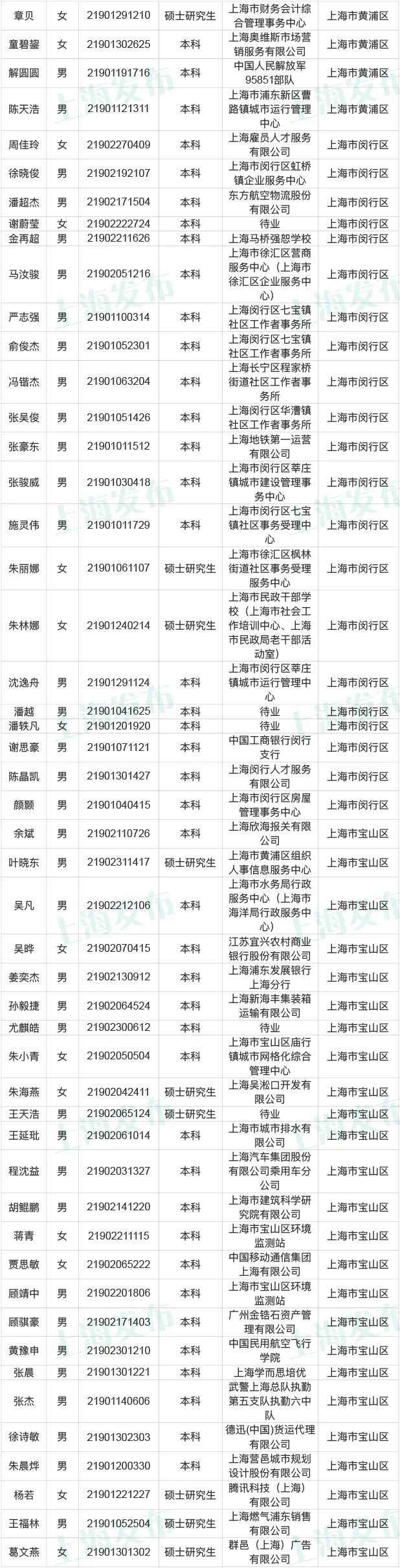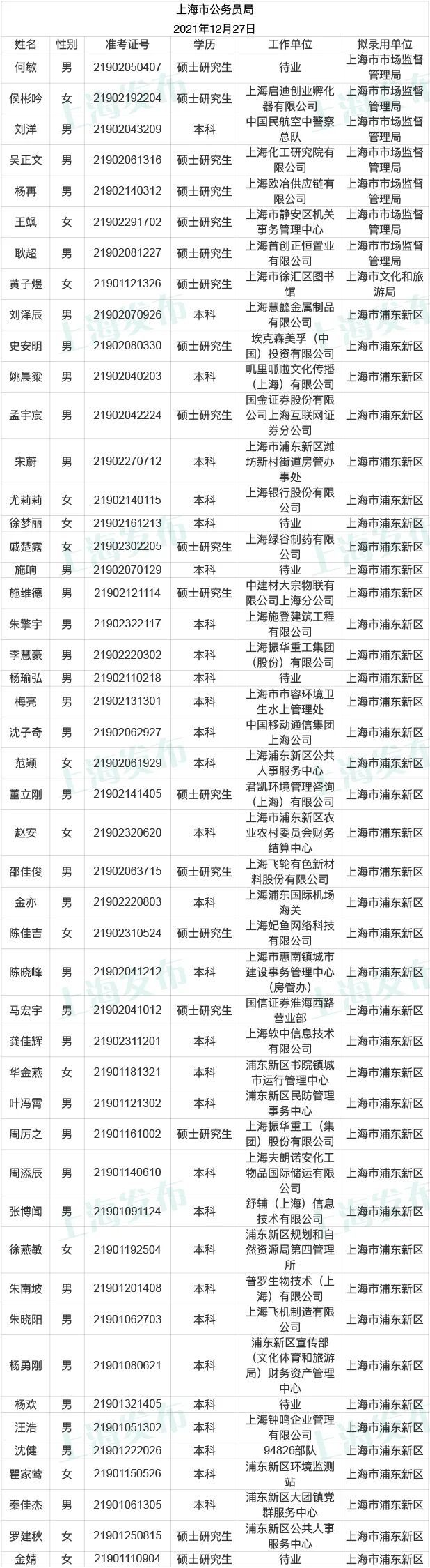 市公务员局说,经过笔试、面试、体检、考察等程序,对上海市2021年行政执法类公务员招考拟录用名单进行公示。来看看有没有你认识的?